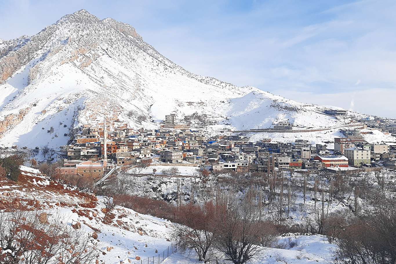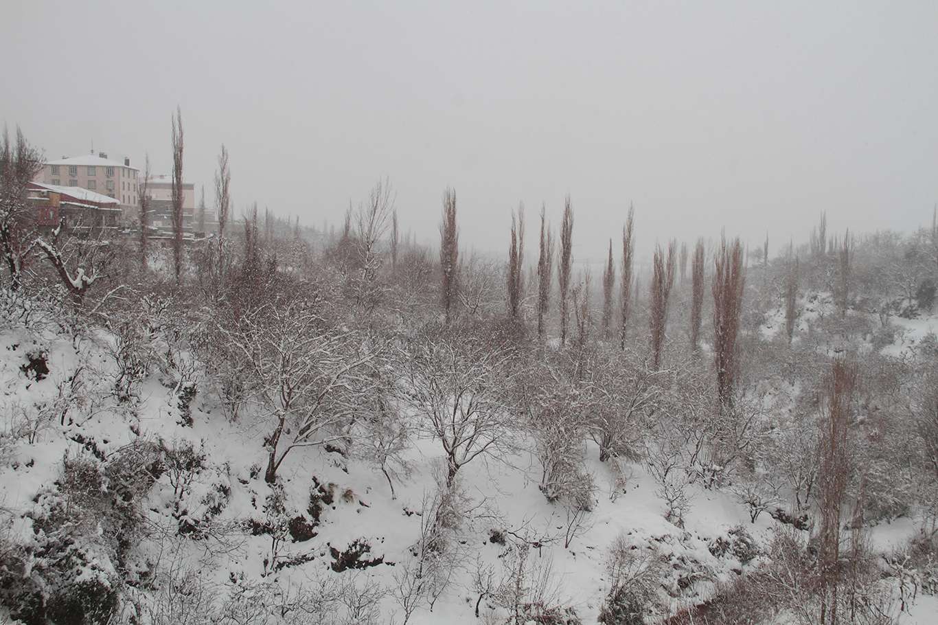 Kar yağışı Cudi Dağı eteklerinde kartpostallık görüntüler oluşturdu