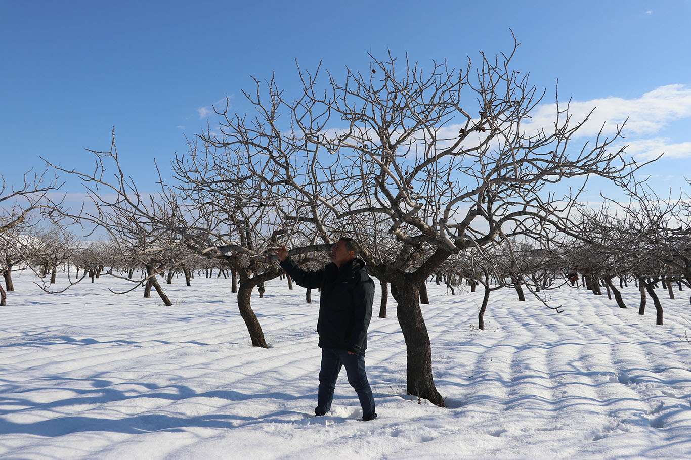 Kar yağışı Gaziantep’te çiftçinin yüzünü güldürdü