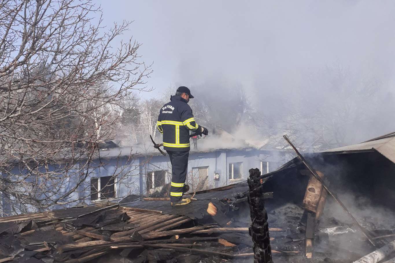 Kilitli parke tesisinin çatısında çıkan yangın güçlükle söndürüldü