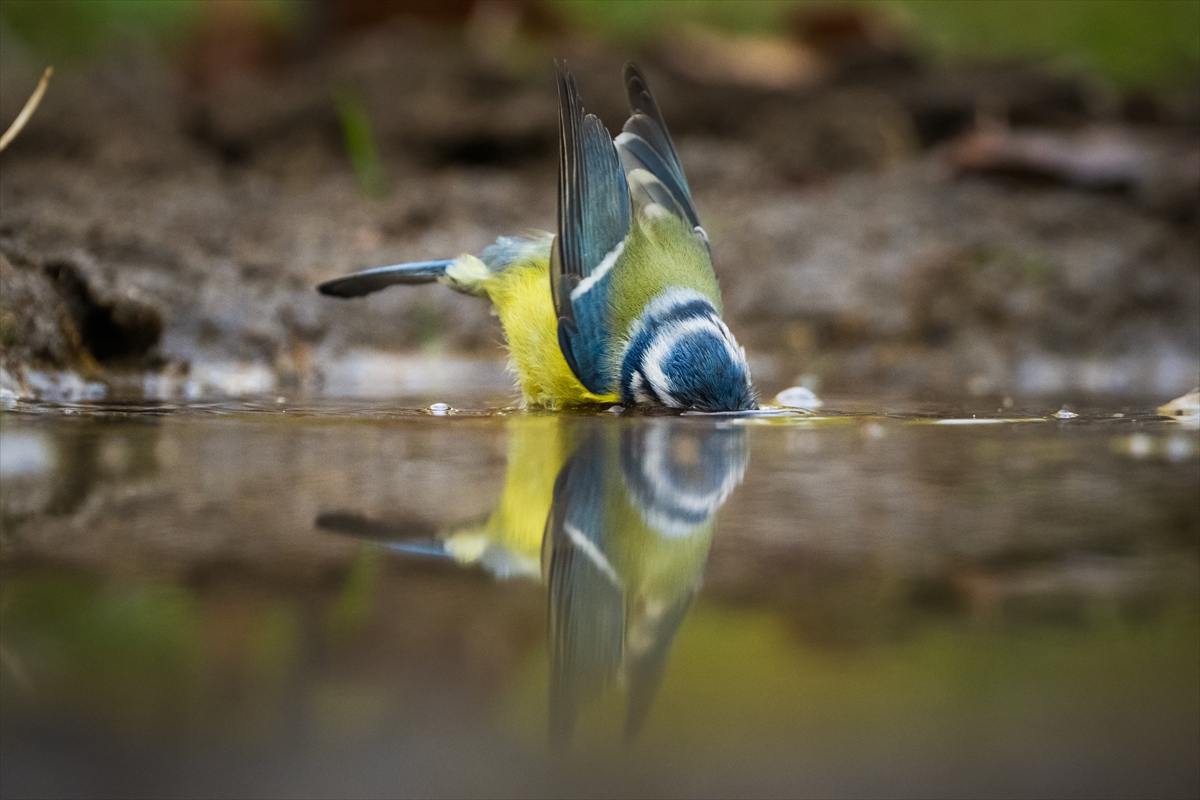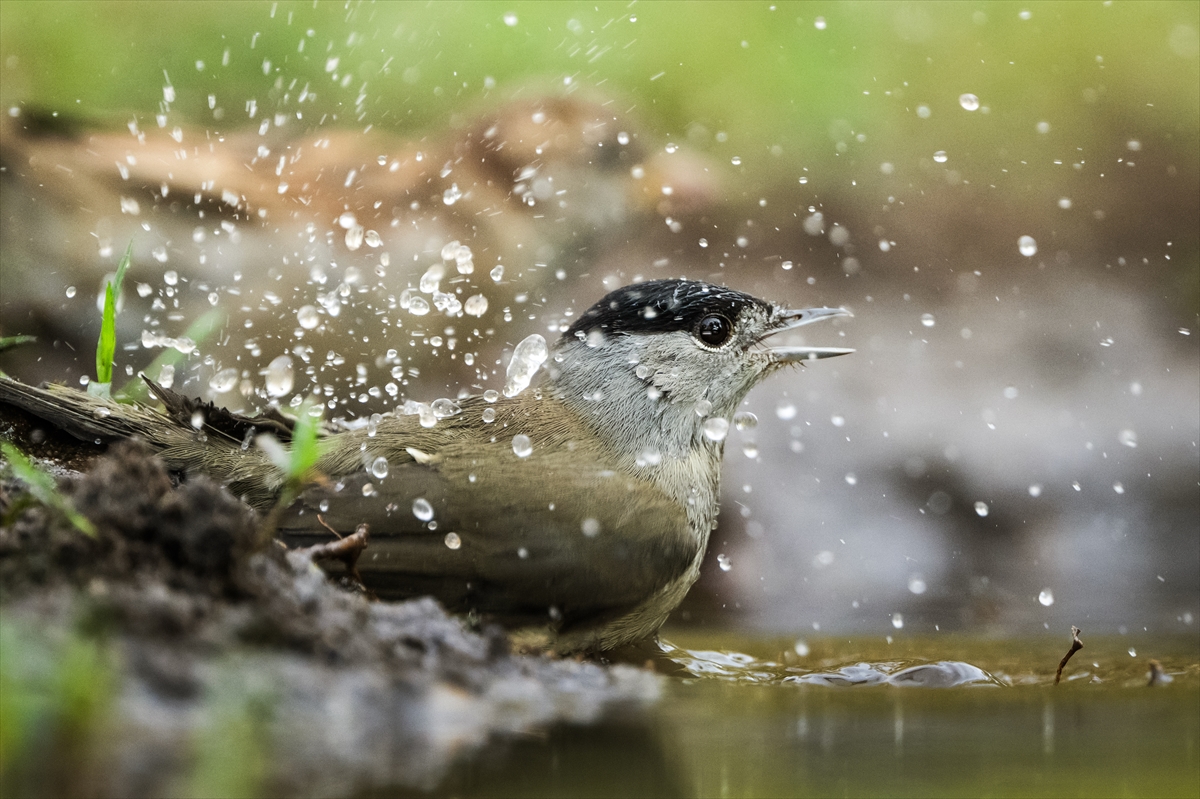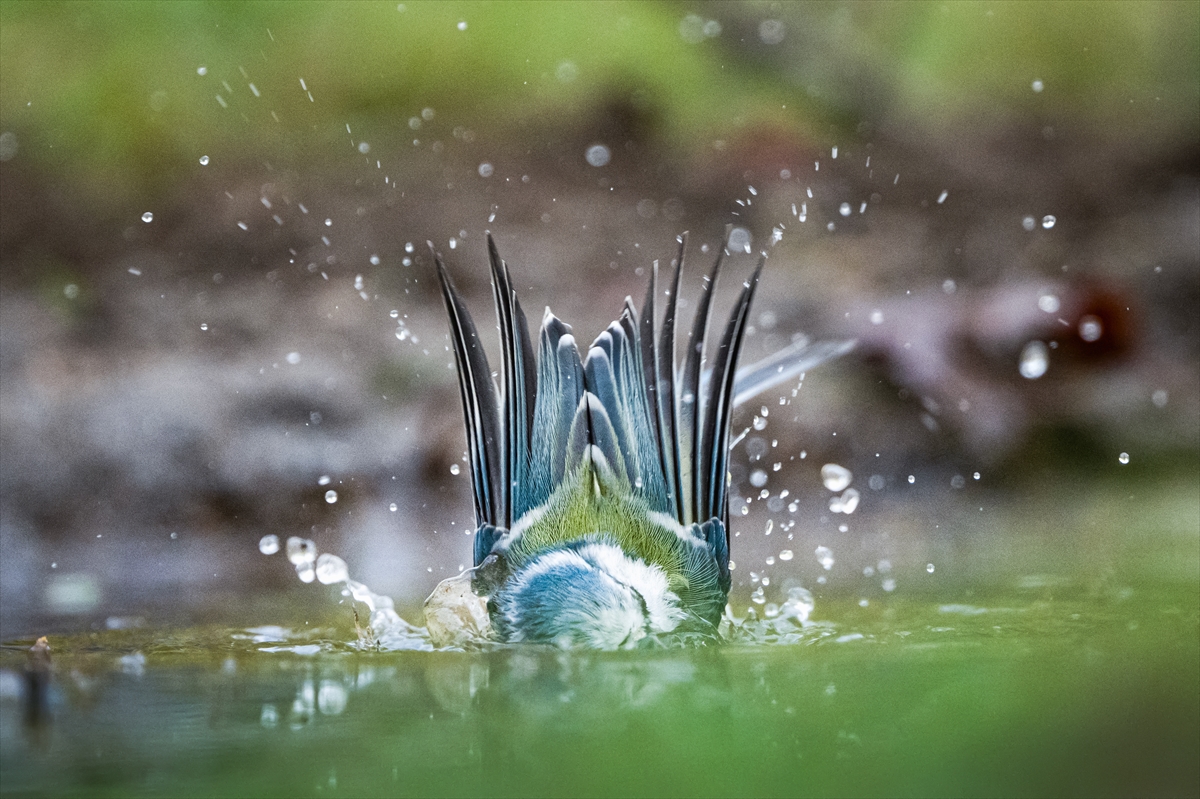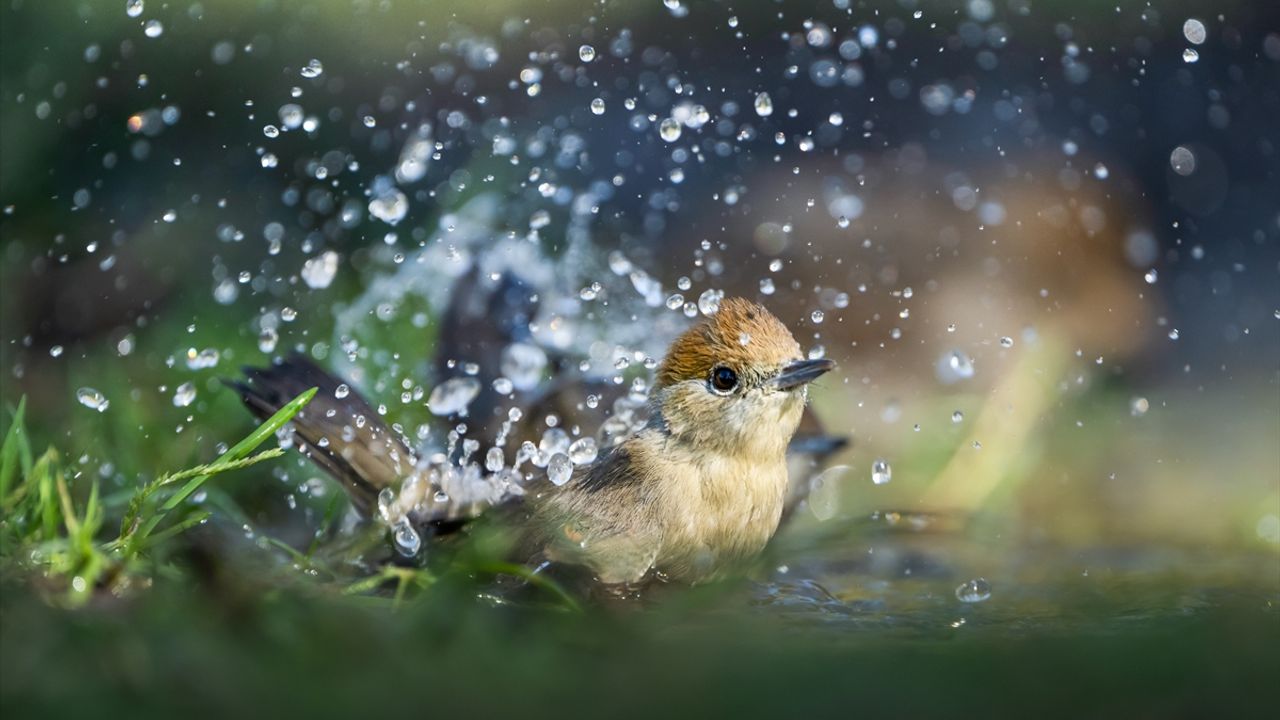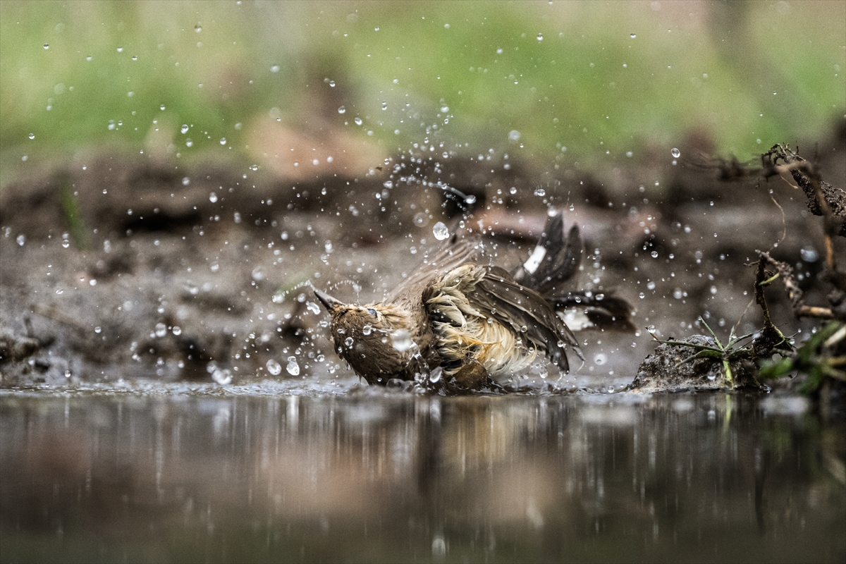 Bölgede yaşayan kuşların su birikintilerinde banyo yaptığı ve su içtiği anlar usta gazete fotoğrafçısı tarafından görüntülendi.
