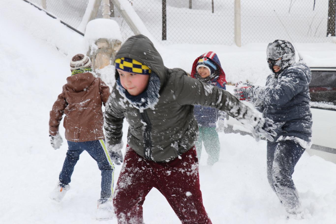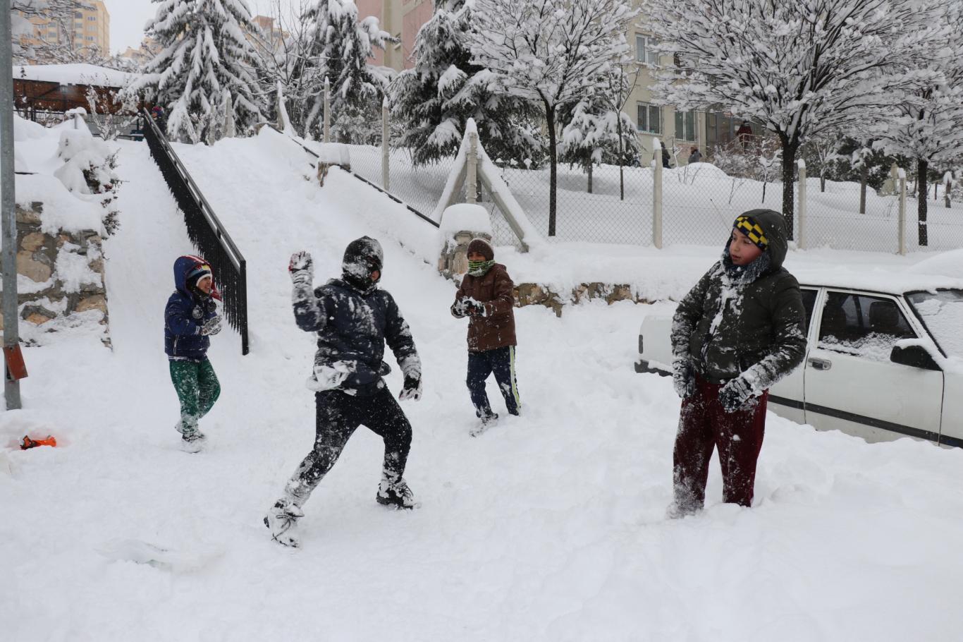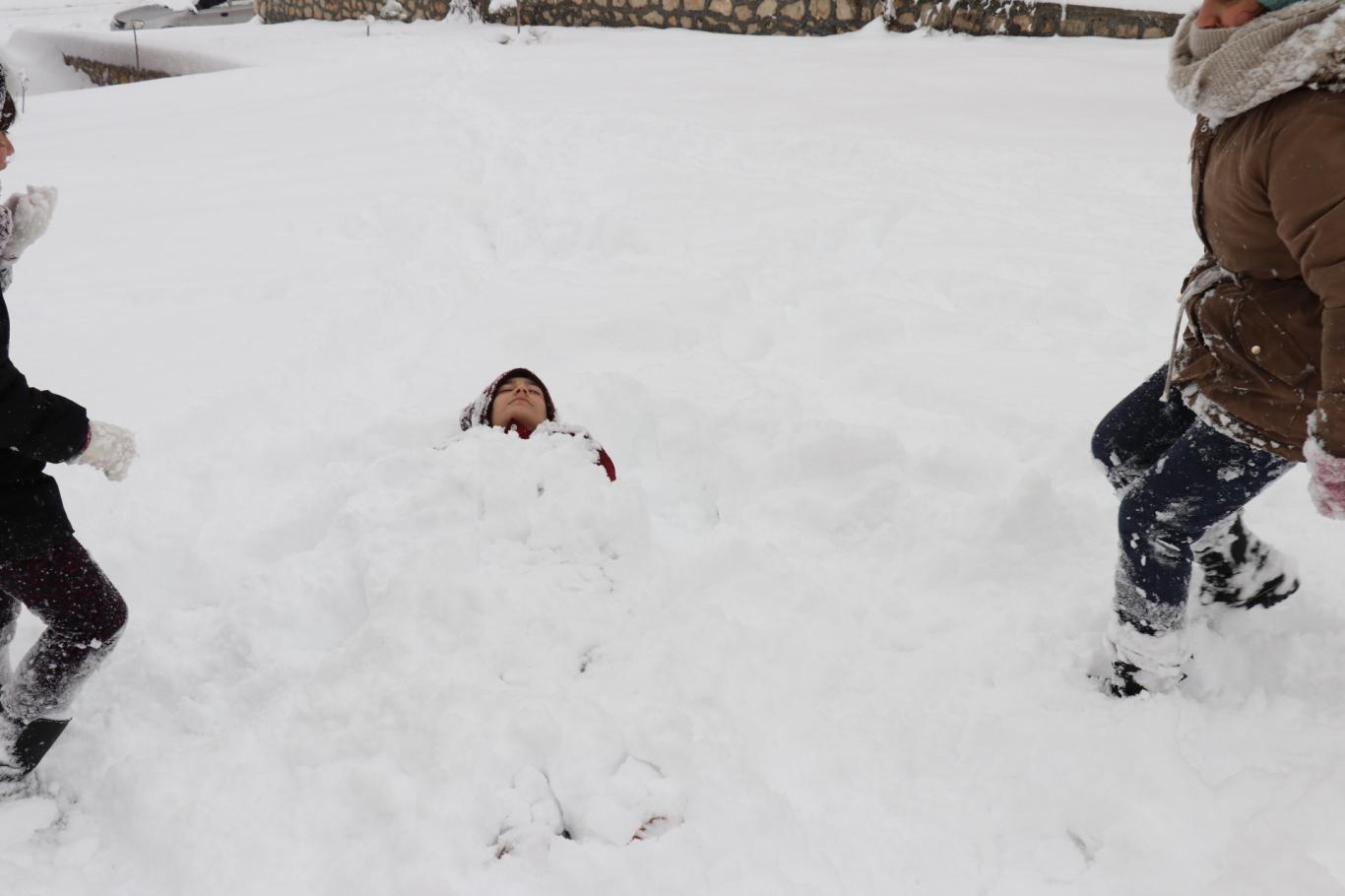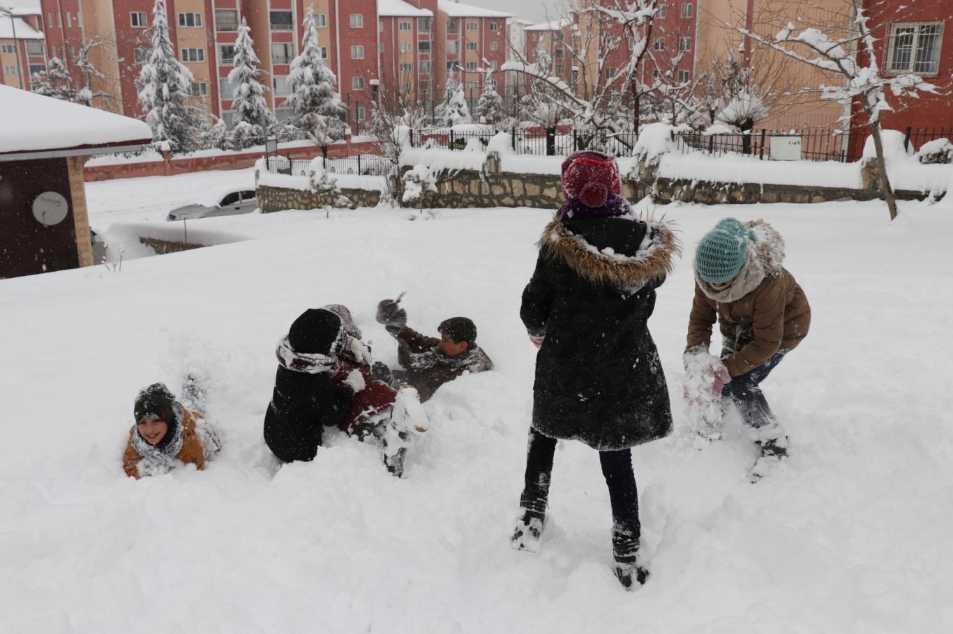Malatya'da kar tatilini fırsat bilen çocuklar doyasıya eğlendi