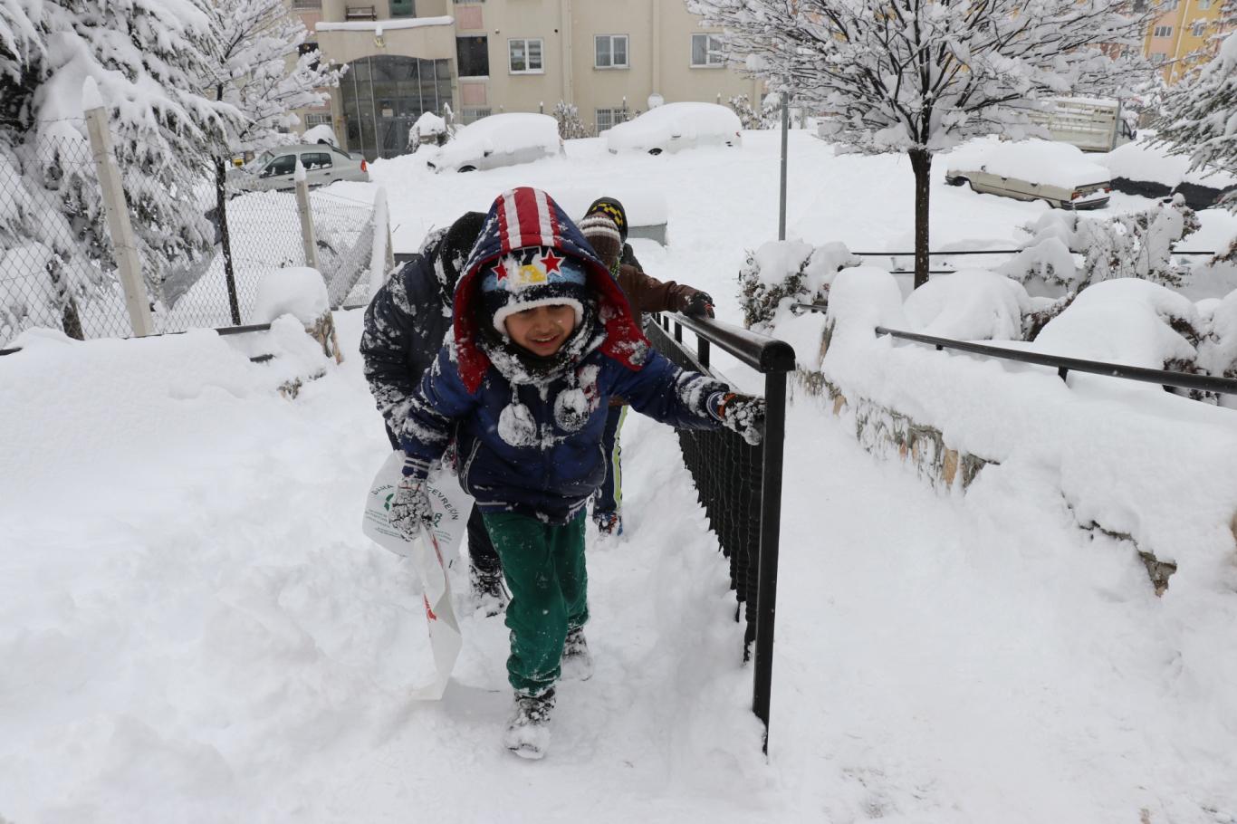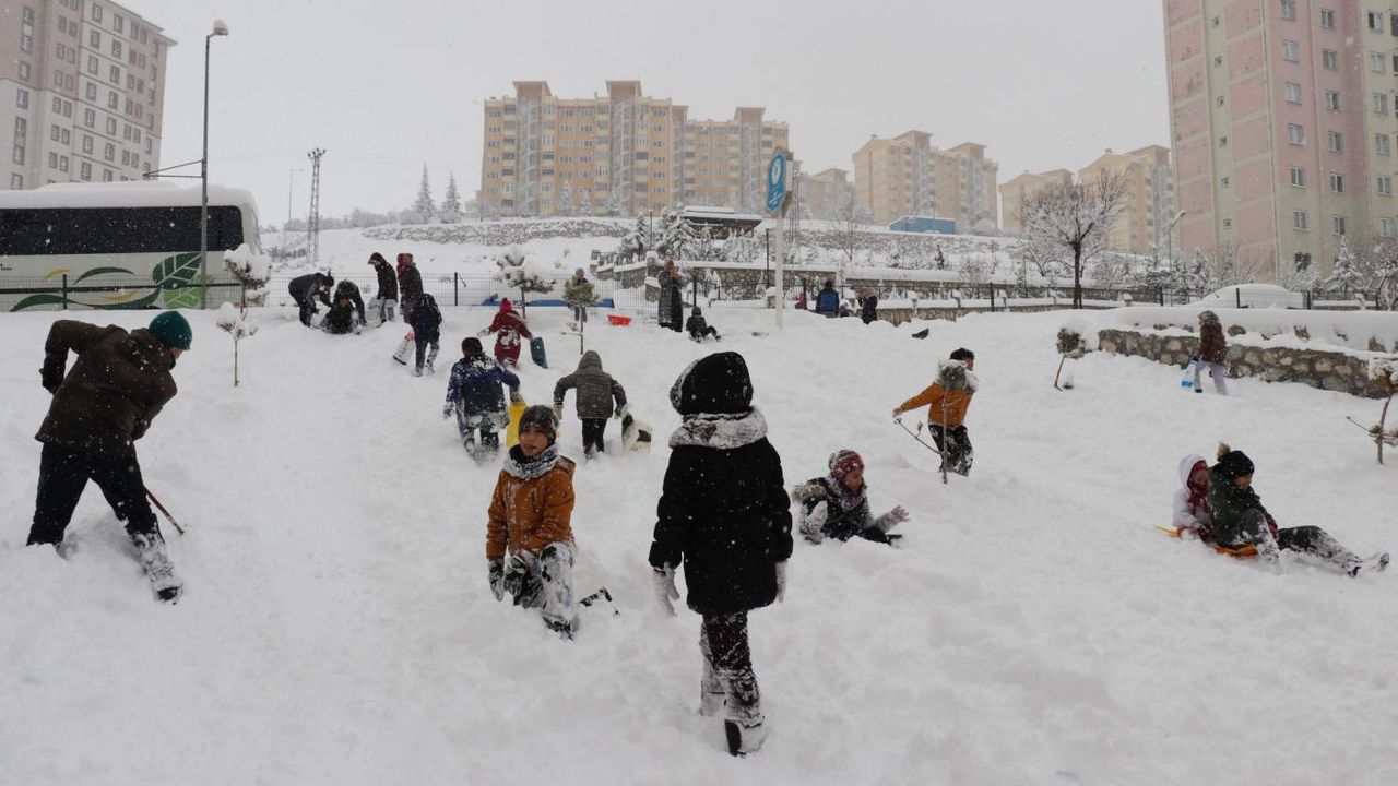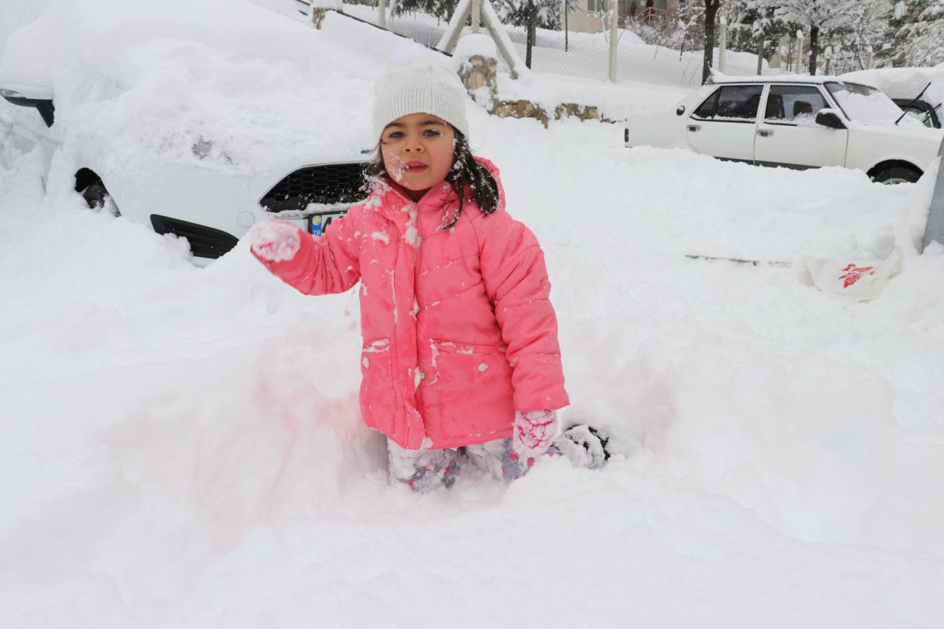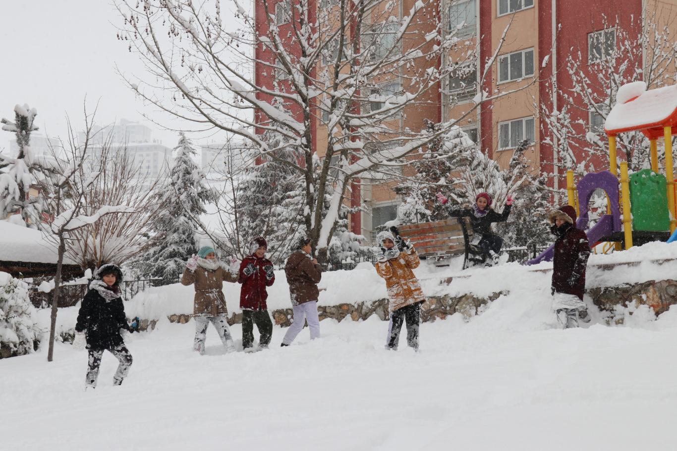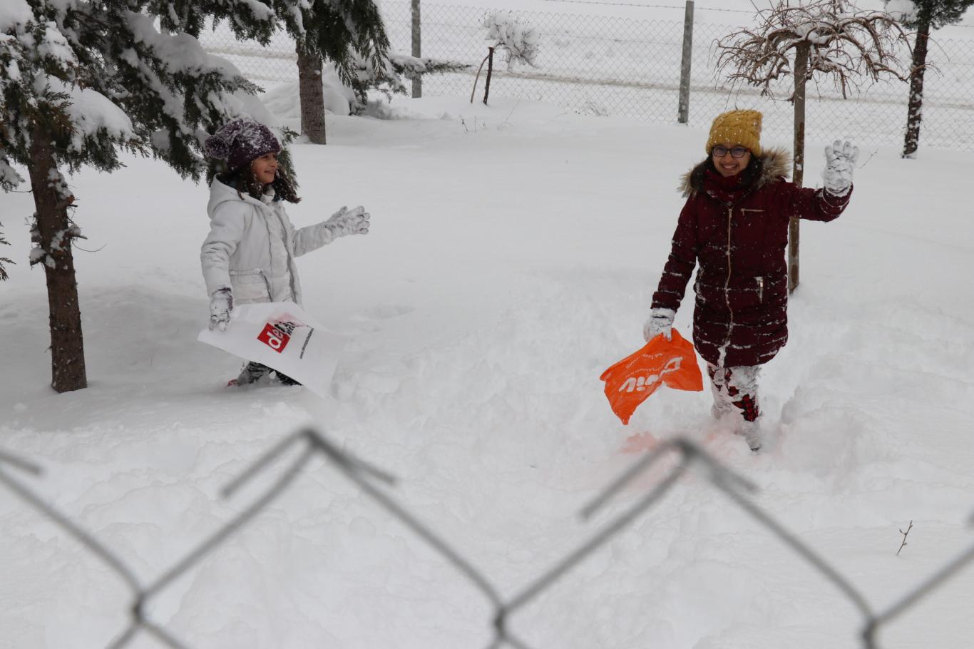 Malatya'da kar tatilini fırsat bilen çocuklar doyasıya eğlendi