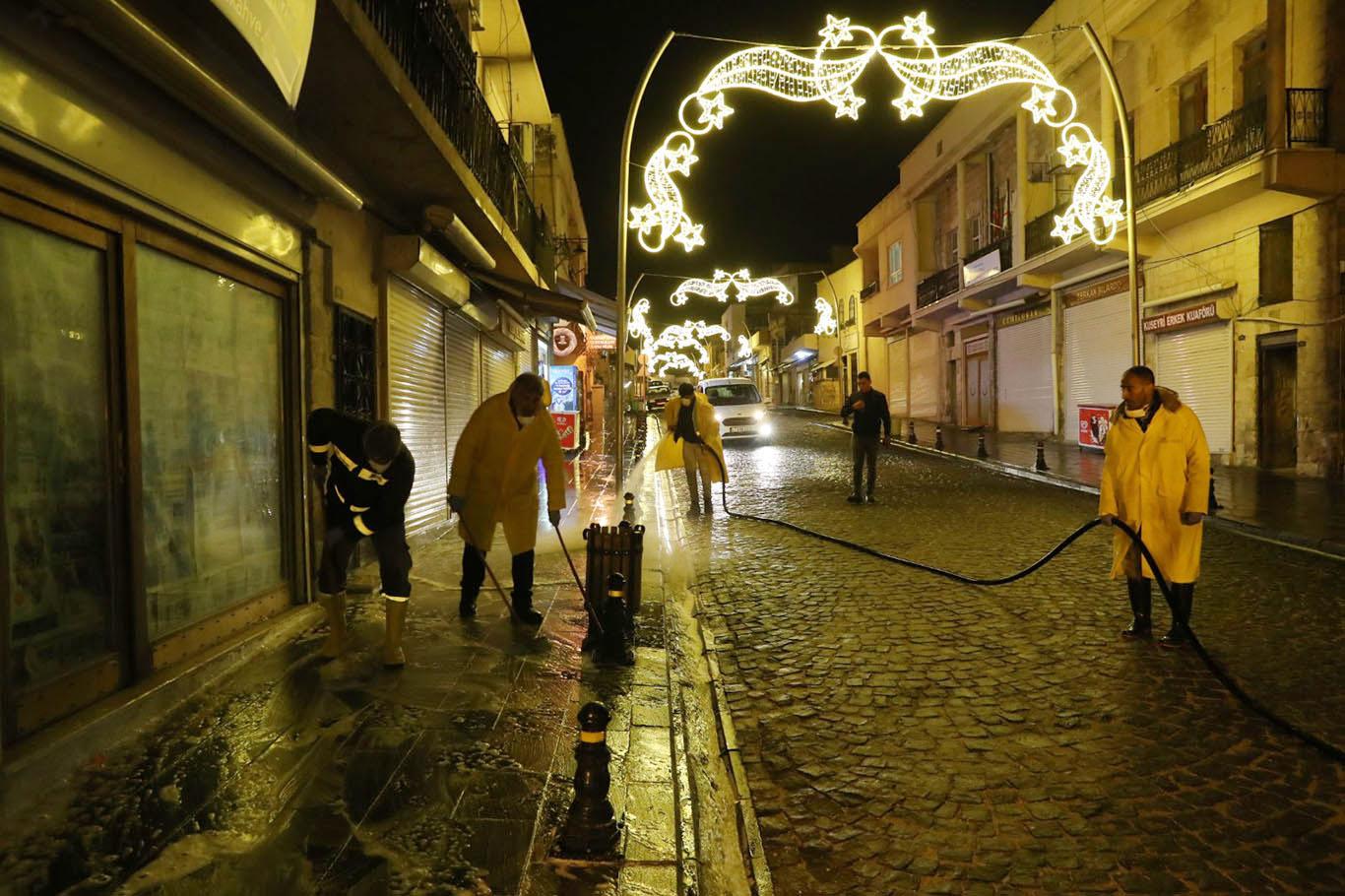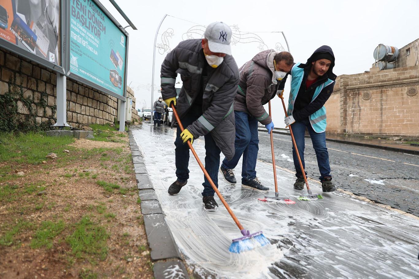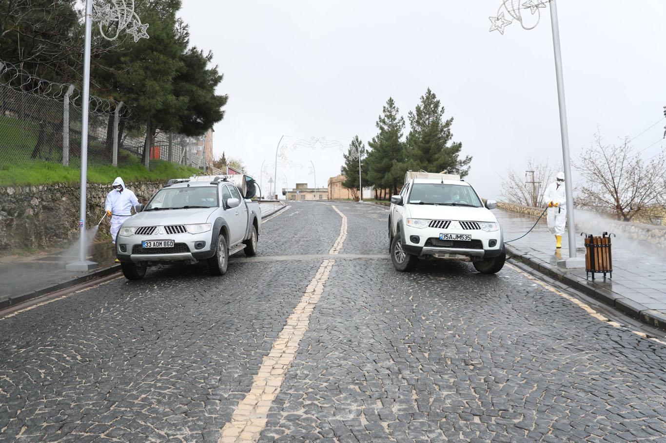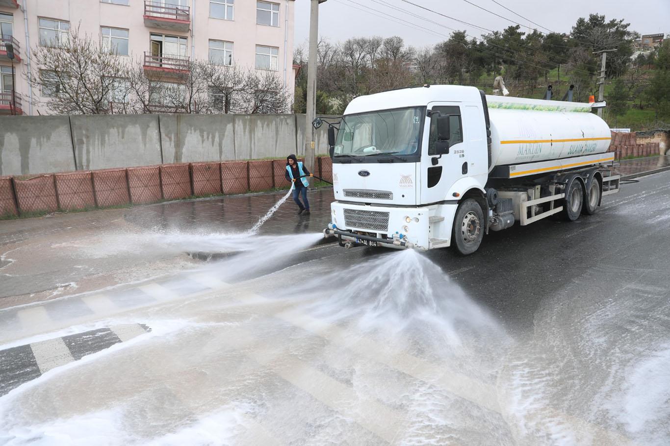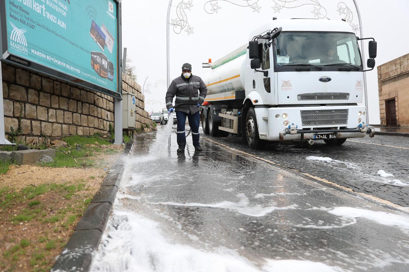 Mardin’de cadde ve sokaklar yıkanarak dezenfekte ediliyor