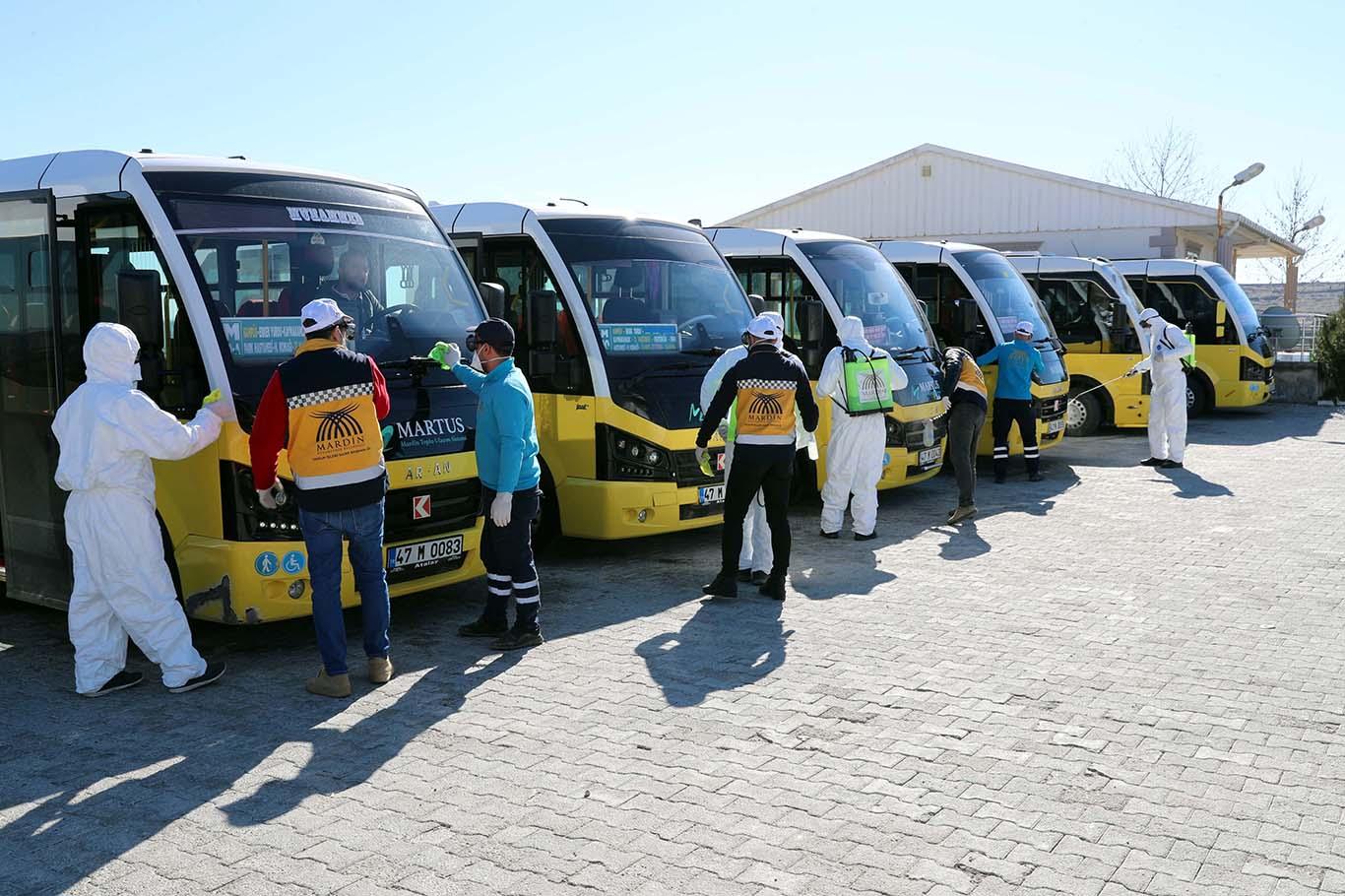 Mardin’de toplu taşıma araçları dezenfekte ediliyor