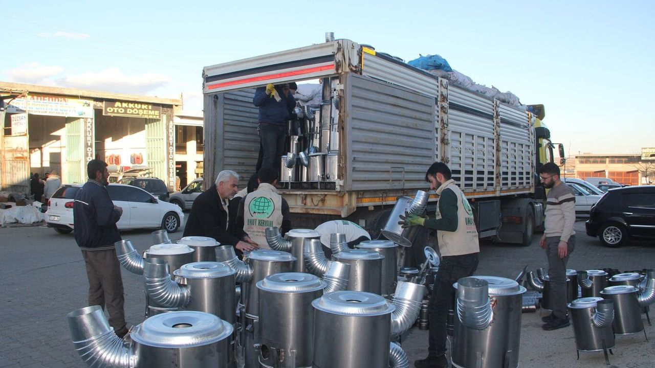 Midyat'tan deprem bölgesine odun sobası ve odun yardımı