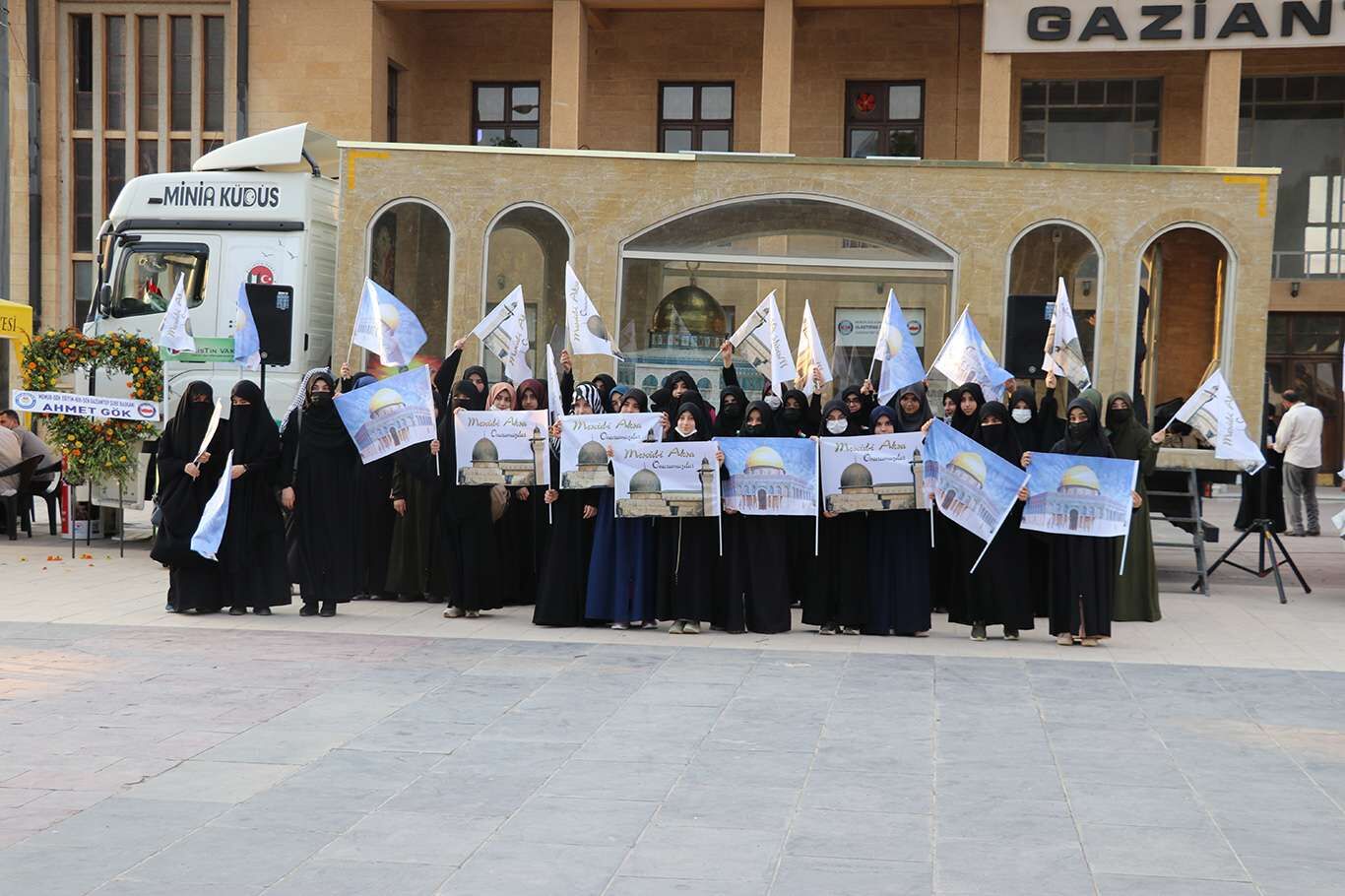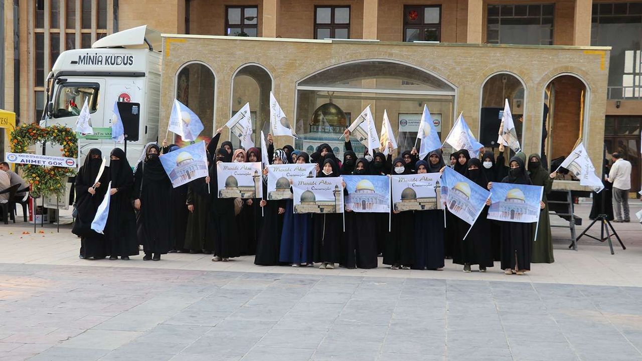 Minia Kudüs tırı halktan yoğun ilgi gördü