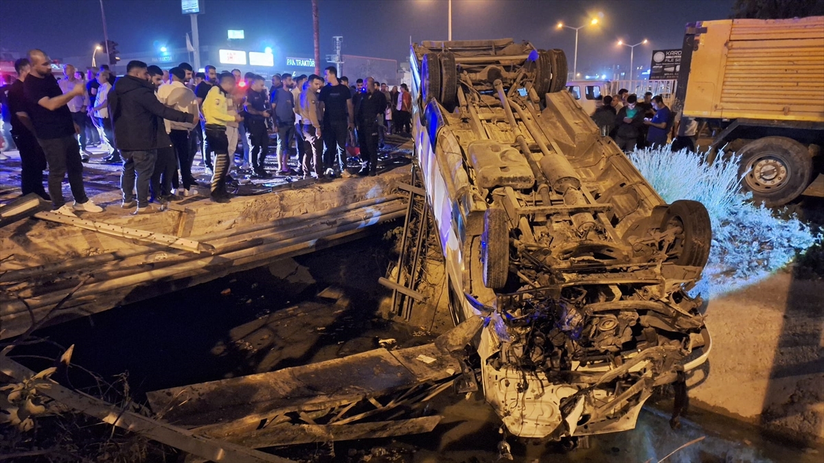 Çarpışmanın etkisiyle minibüs yol kenarındaki sulama kanalına devrildi.