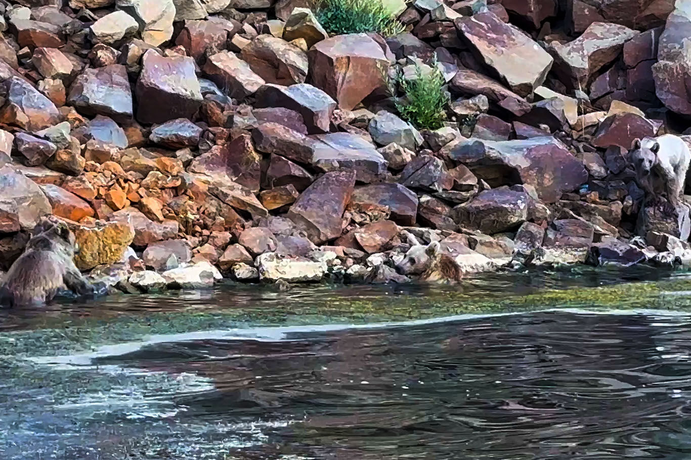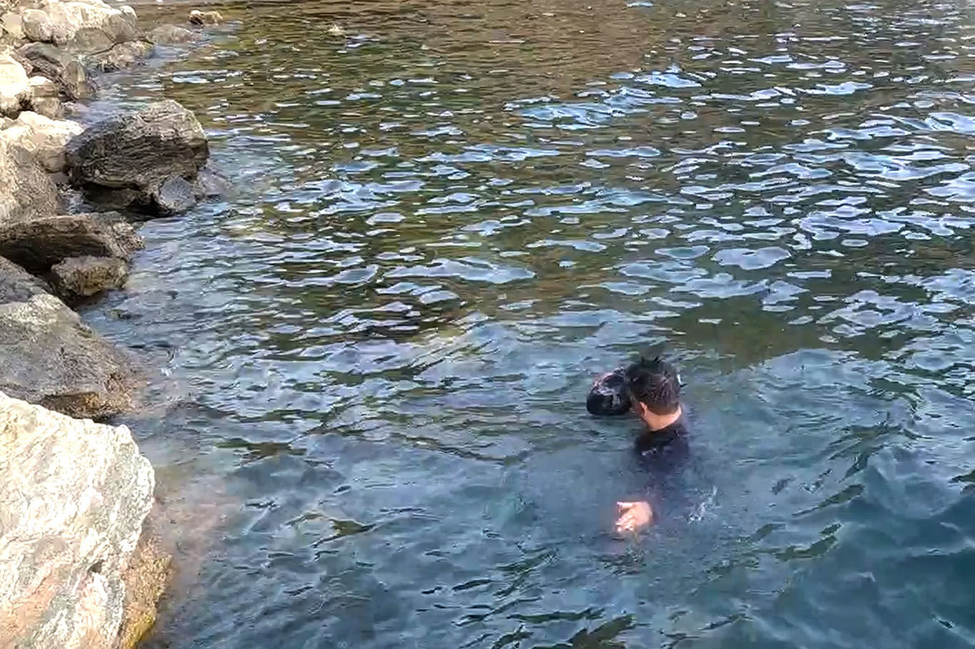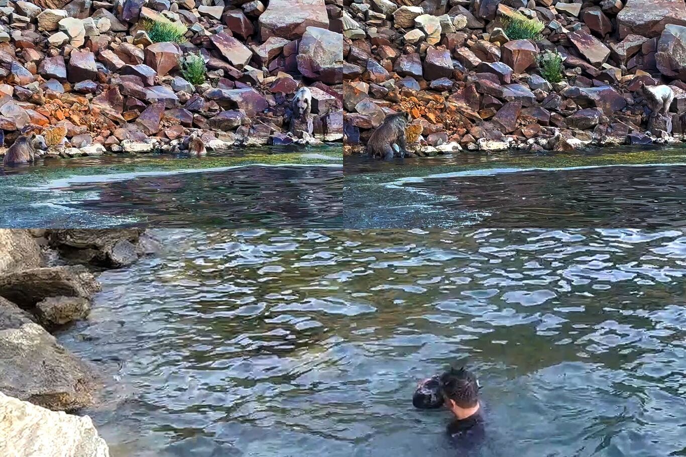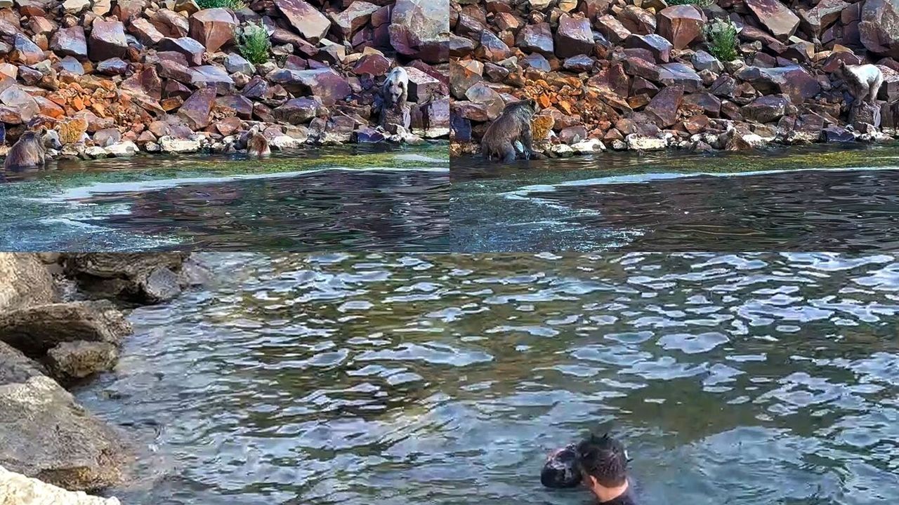 Nemrut kraterindeki ayılar önce yüzdüler sonra dalgıcın sudan çıkmasını beklediler