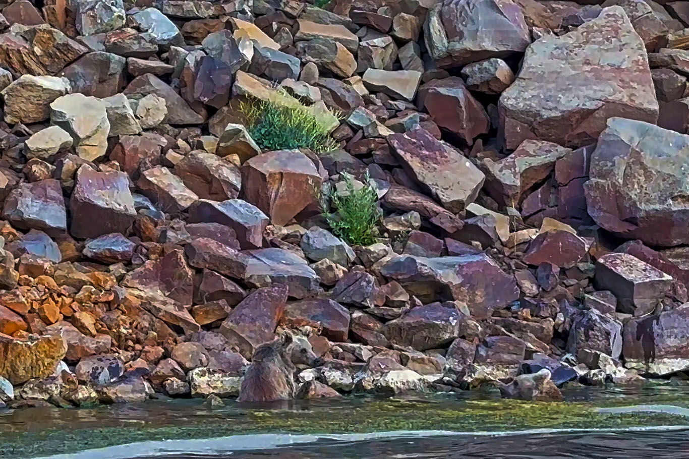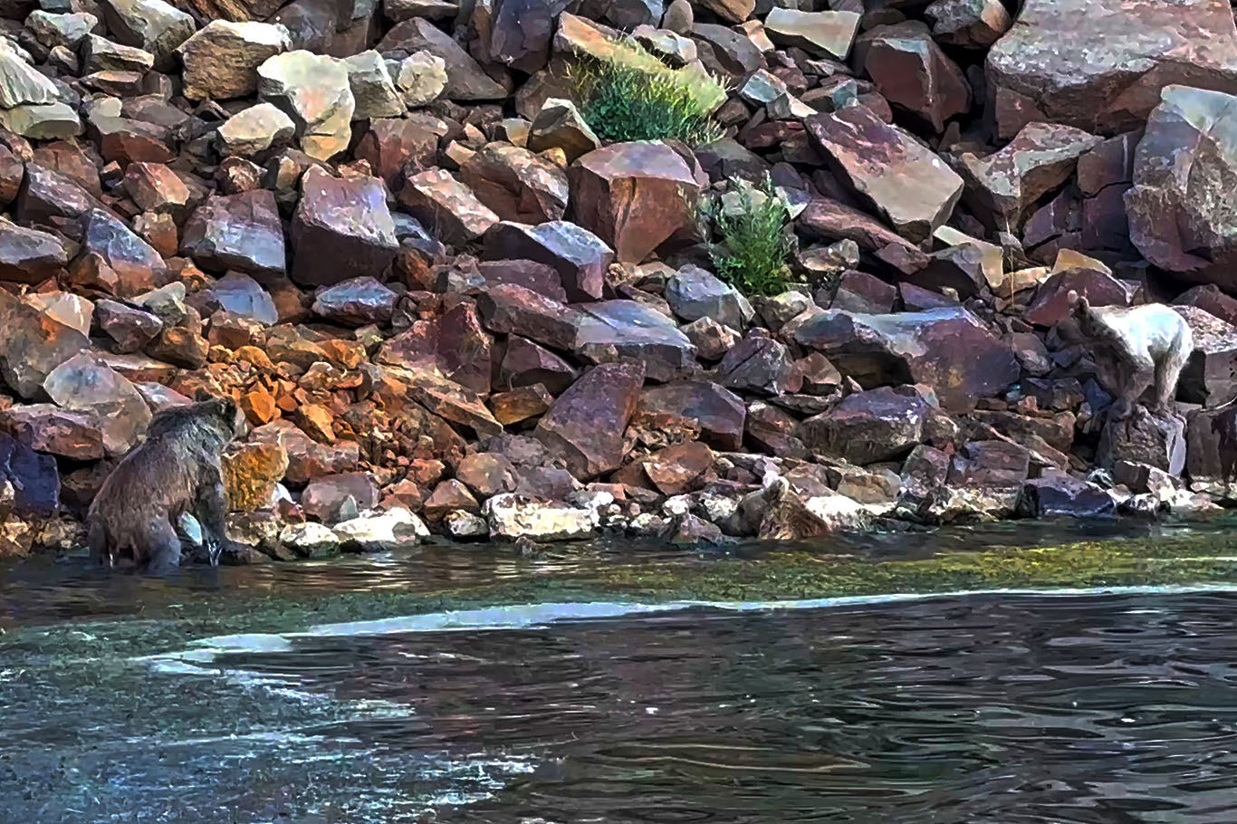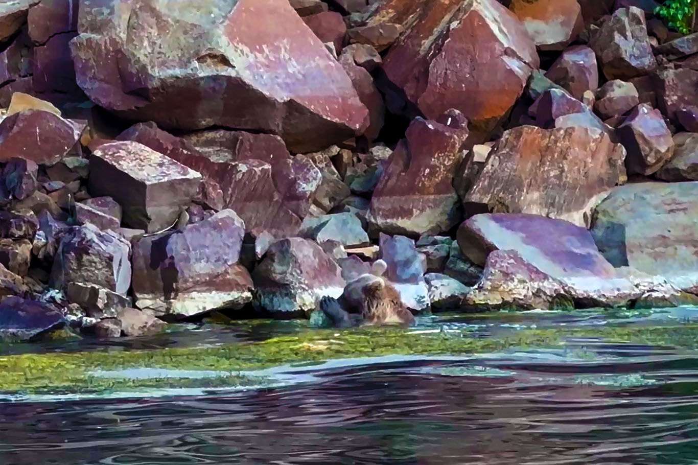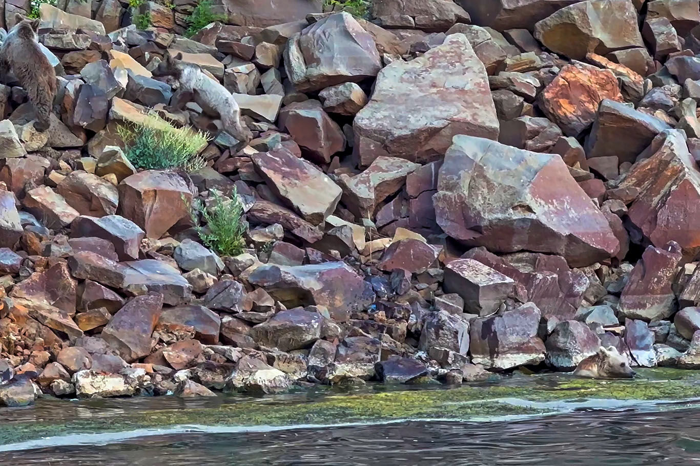 Nemrut kraterindeki ayılar önce yüzdüler sonra dalgıcın sudan çıkmasını beklediler
