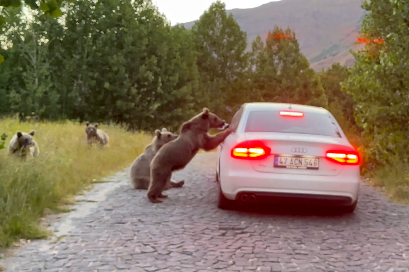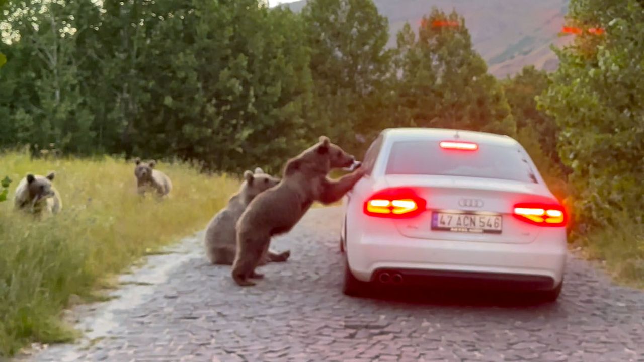Nemrut’taki ayılar yol kesip vatandaşlardan yemek istiyor
