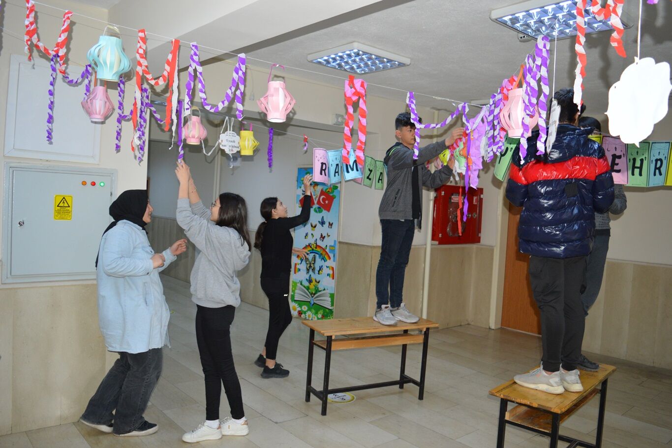 Öğrenciler Ramazan'ın gelişinin okullarını süsleyerek karşıladı