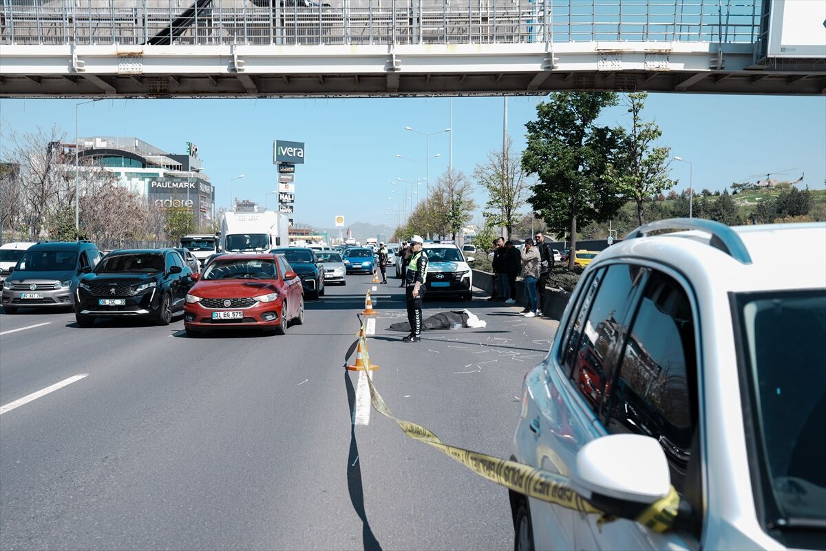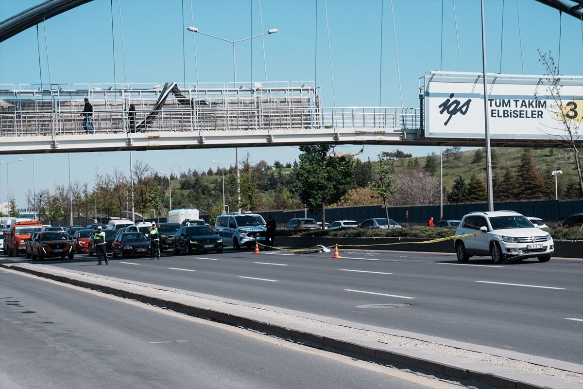 Afiş astığı sırada dengesini kaybederek yaklaşık 4 metre yükseklikten bulvara düşen Vedat G'nin üzerinden, Eryaman istikametine giden M.K. idaresindeki 06 EIS 743 plakalı otomobil geçti.