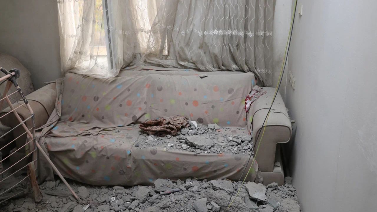 Roketin düştüğü ev kullanılamaz hale geldi