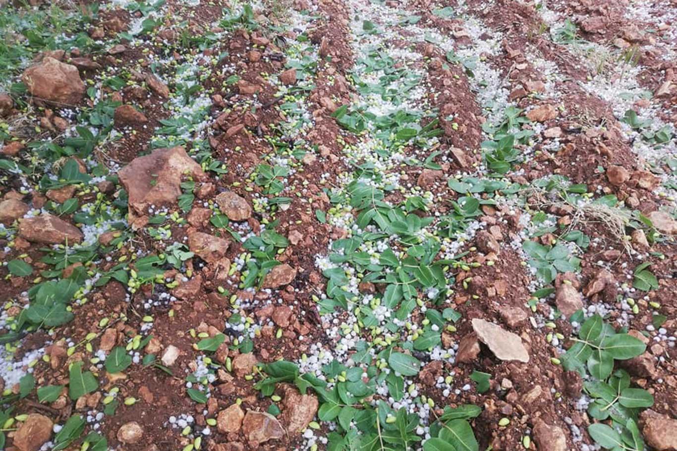 Şanlıurfa’da etkili olan dolu yağışından dolayı fıstık bahçeleri zarar gördü
