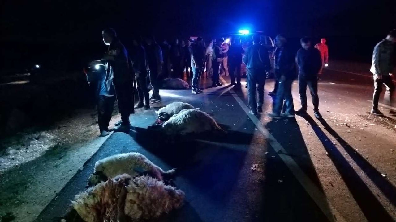 Şanlıurfa'da otomobil koyun sürüsüne çarptı:1 yaralı,12 küçükbaş hayvan telef oldu