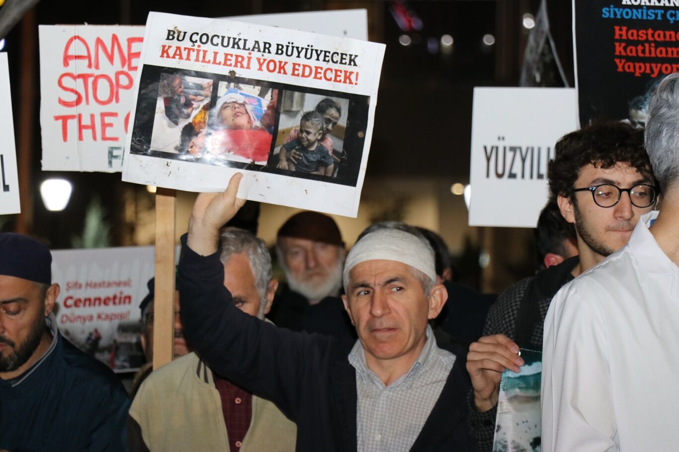Siyonist işgalcilerin Gazze katliamı işgalci ABD Büyükelçiliği önünde prosetso edildi