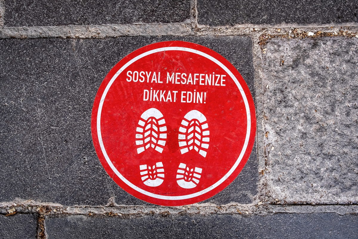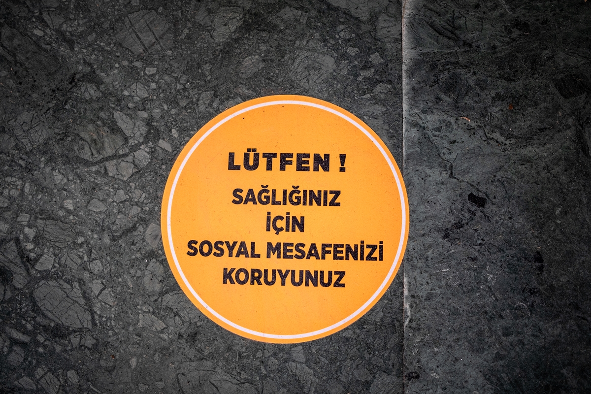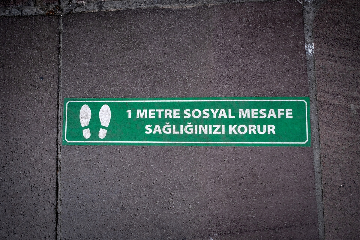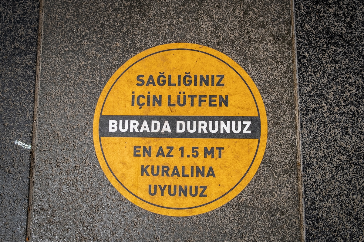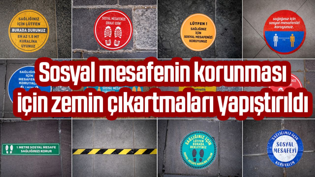 Sosyal mesafenin korunması için zemin çıkartmaları yapıştırıldı