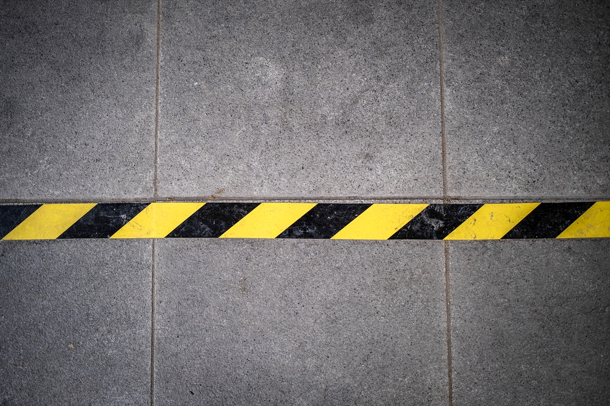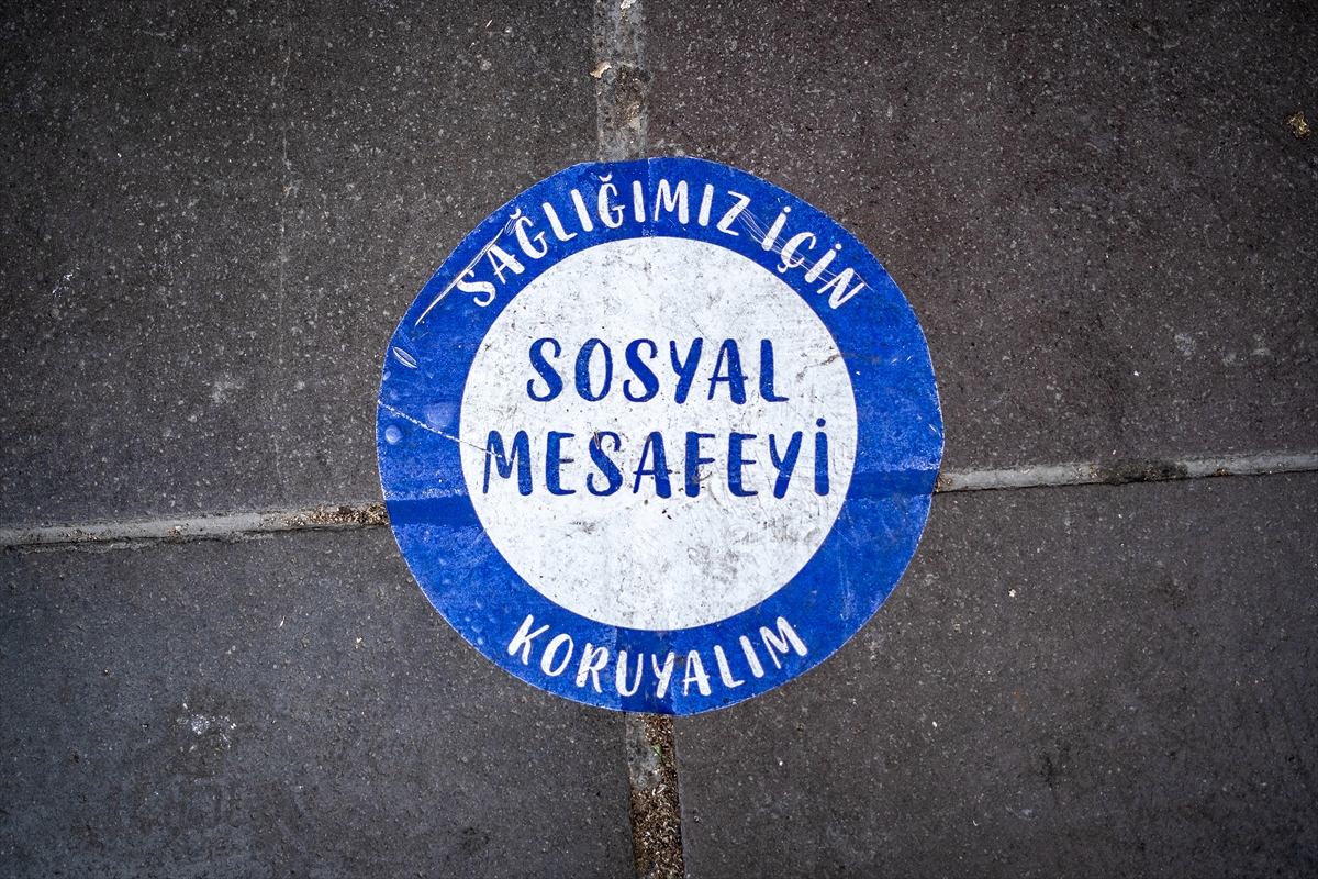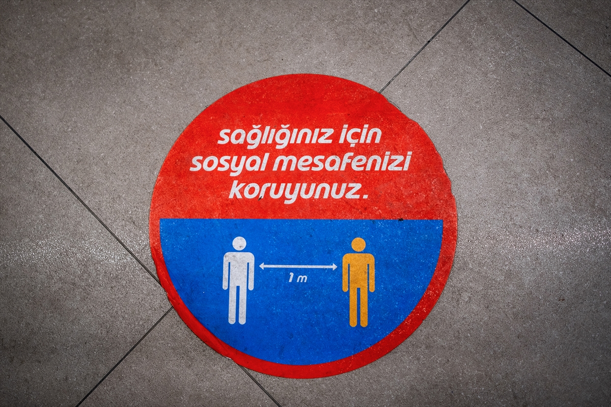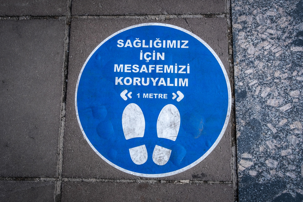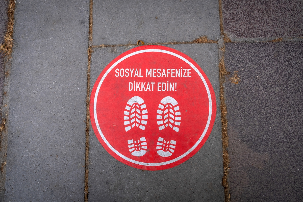 Sosyal mesafenin korunması için zemin çıkartmaları yapıştırıldı