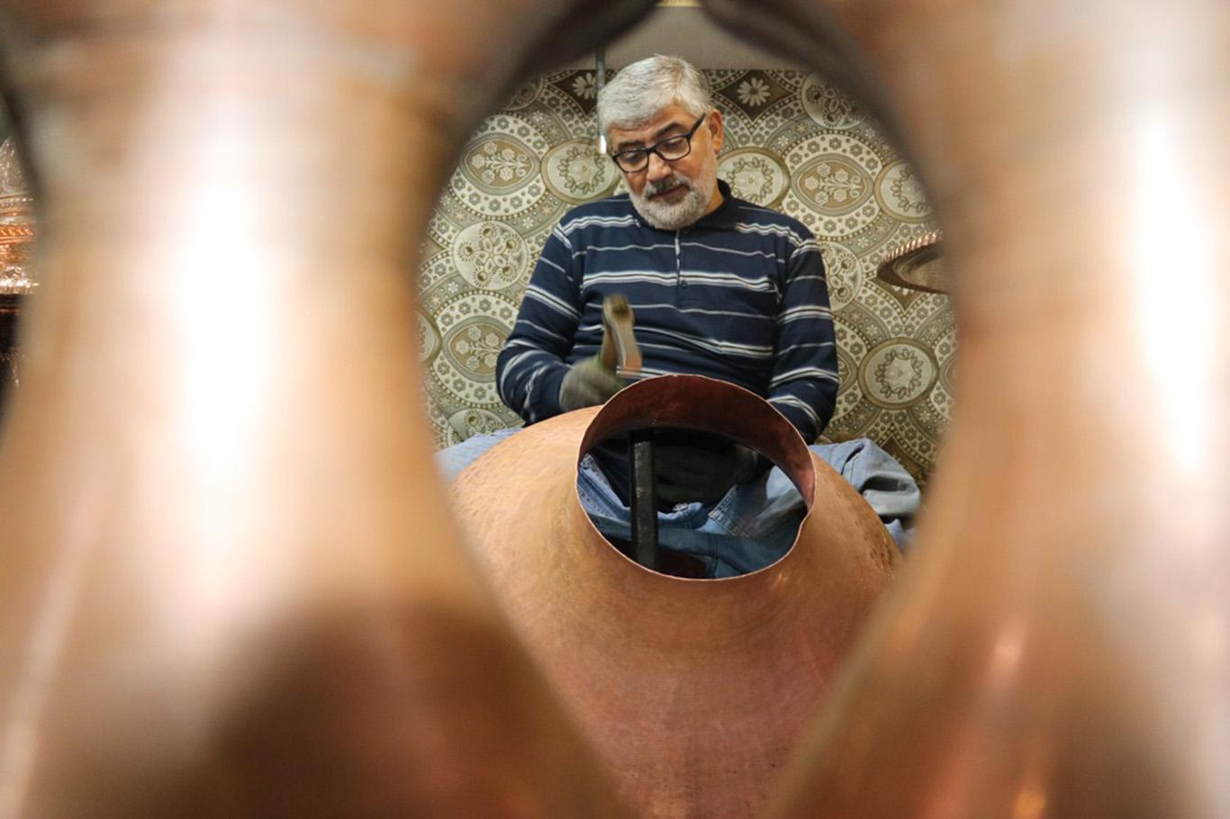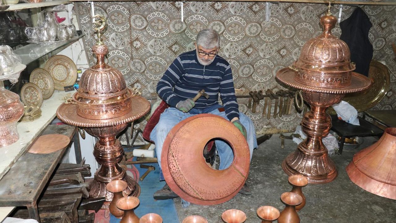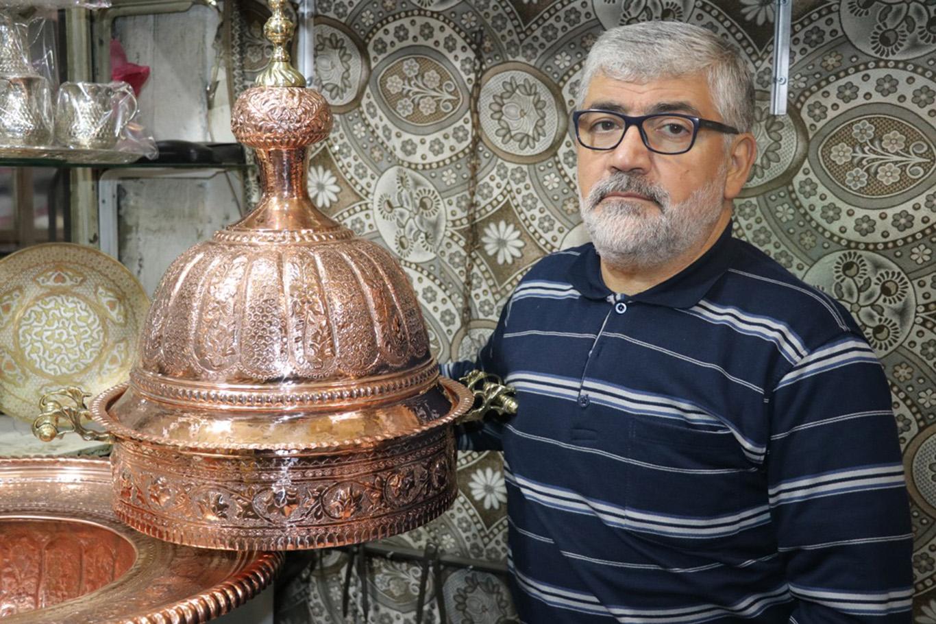 Suriyeli bakır ustası, mesleğini bakırcılığın merkezi Gaziantep'te sürdürüyor