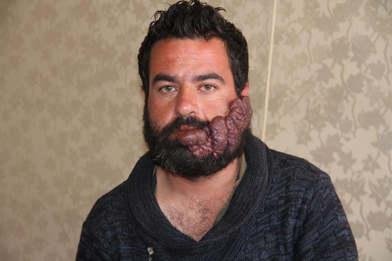 Suriyeli genç, yüzündeki kitlenin ameliyatla alınması için yardım bekliyor