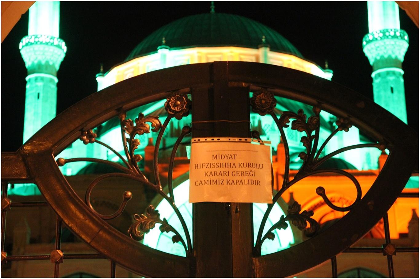 Teravih kılınamayan camilerin minarelerinden ezan, sela, dua ve tekbirler yükseldi
