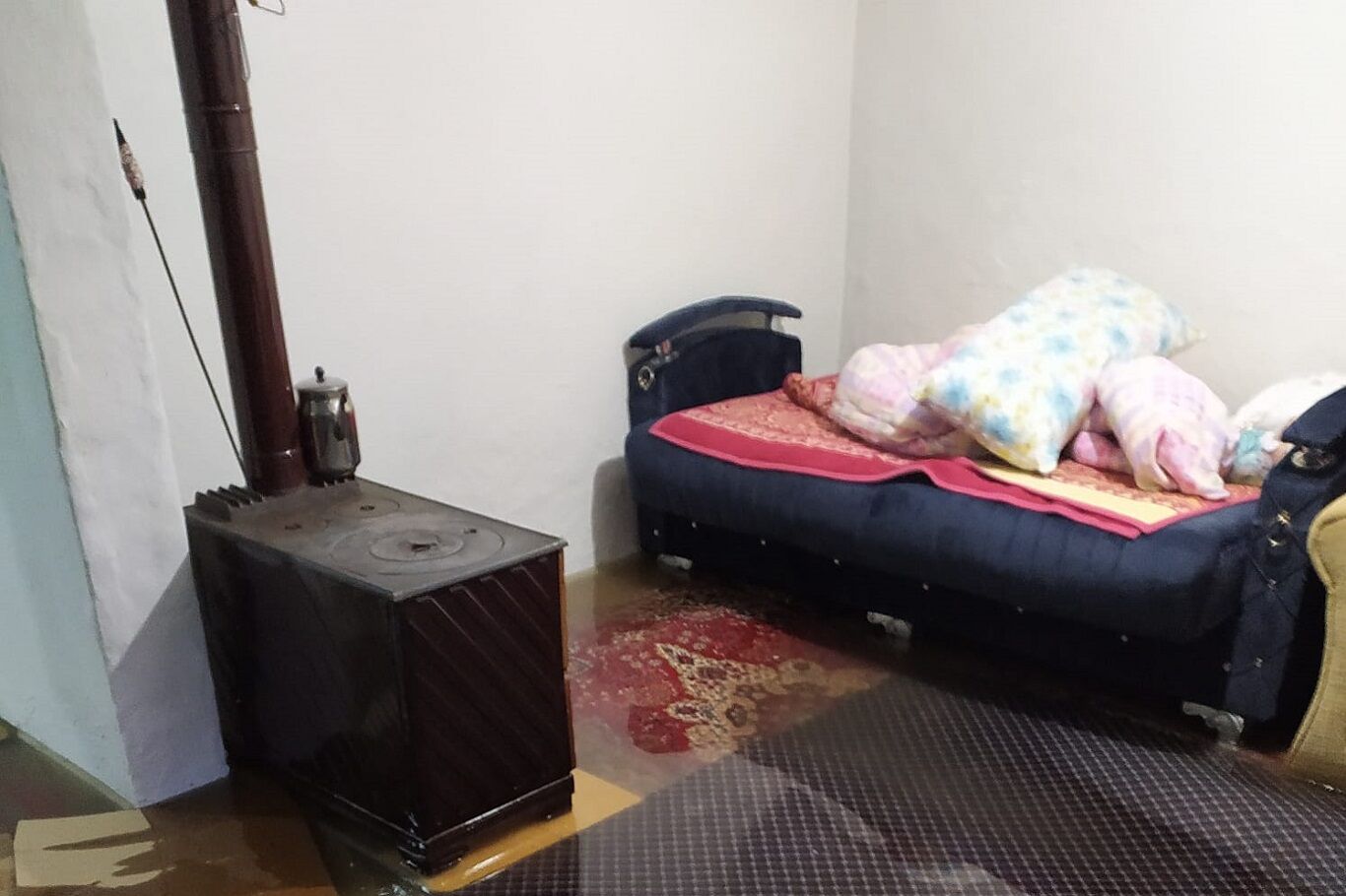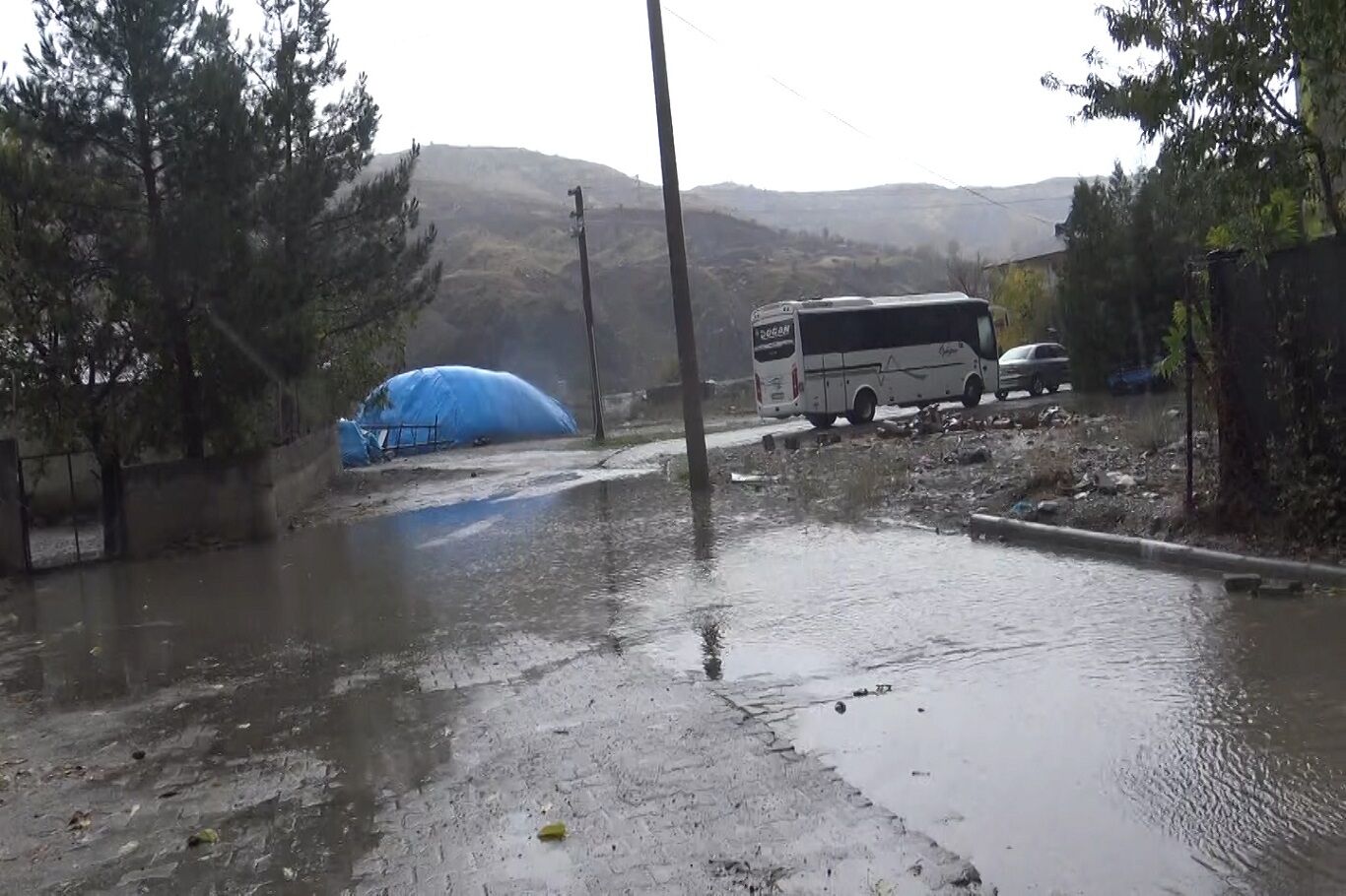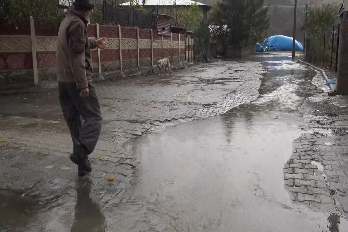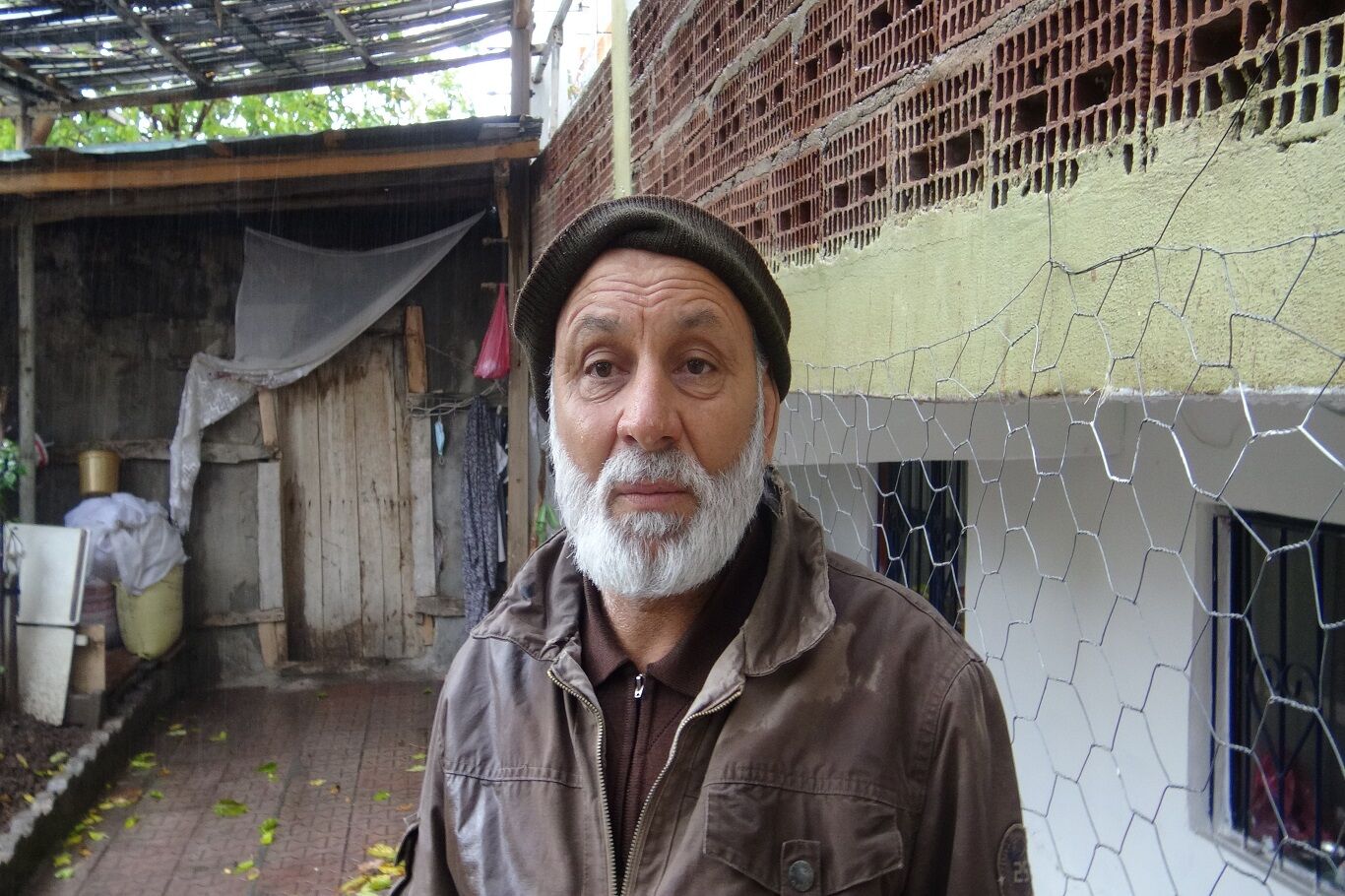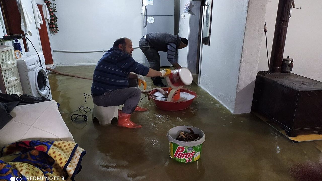 Tıkanan logar nedeniyle evini sel basmasın diye yağmurda nöbet bekliyor
