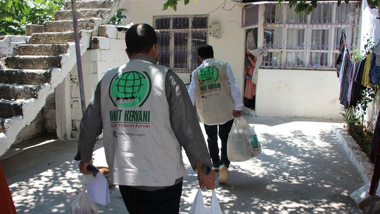 Umut Kervanı Adıyaman'da ihtiyaç sahibi ailelere et, gıda ve temizlik malzemesi dağıttı