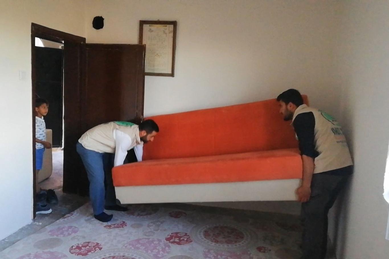 Umut Kervanı Silvan’da Suriyeli ailenin evini onarıp ev eşyası yardımında bulundu