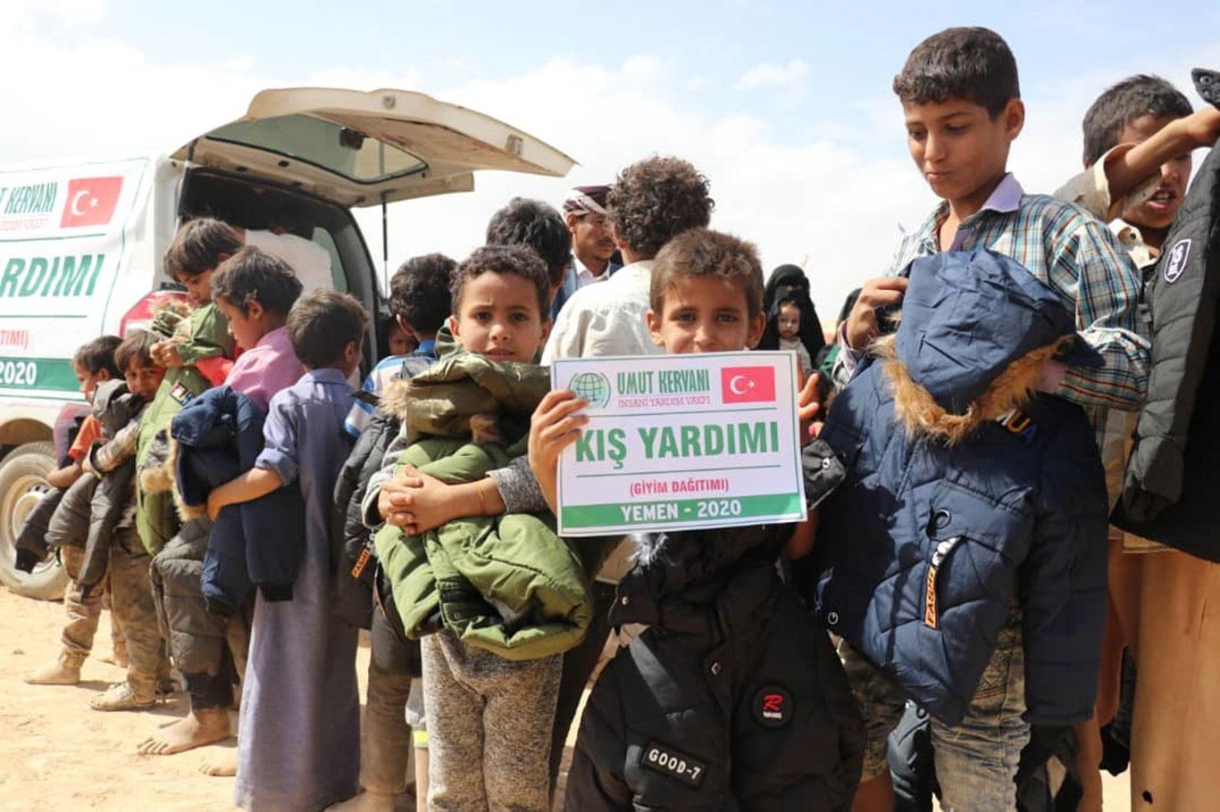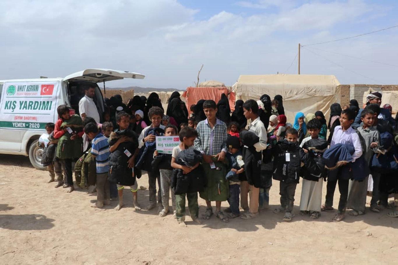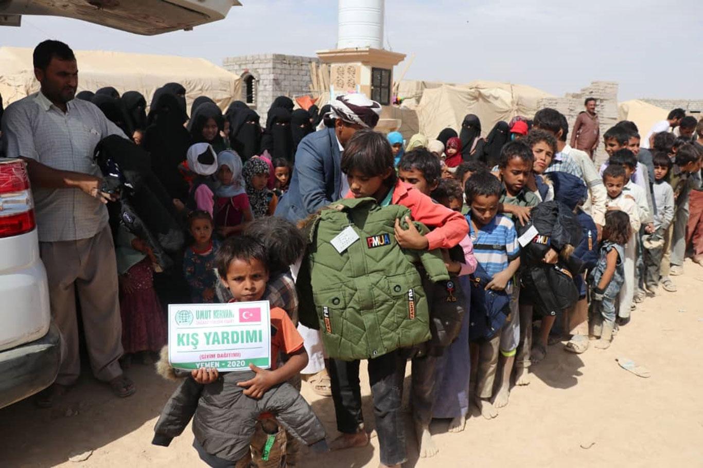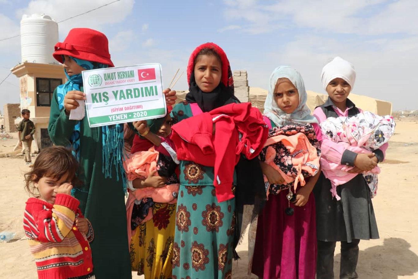 Umut Kervanı Vakfı Yemen'de muhtaçlara kışlık giyim yardımında bulundu