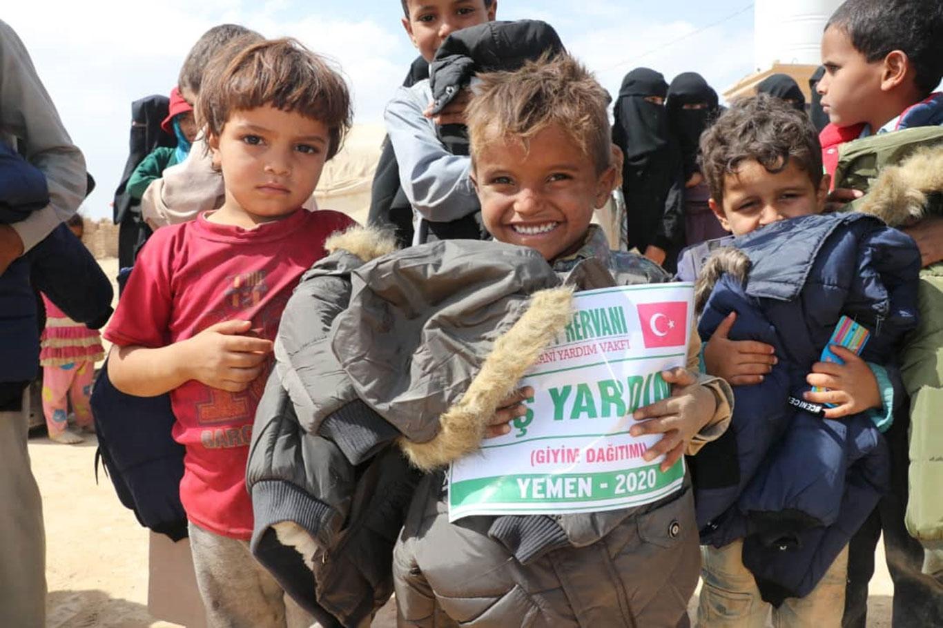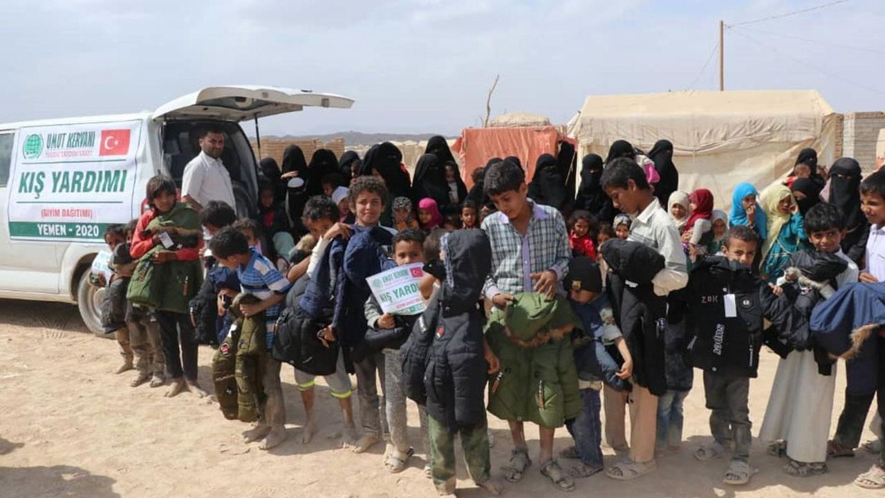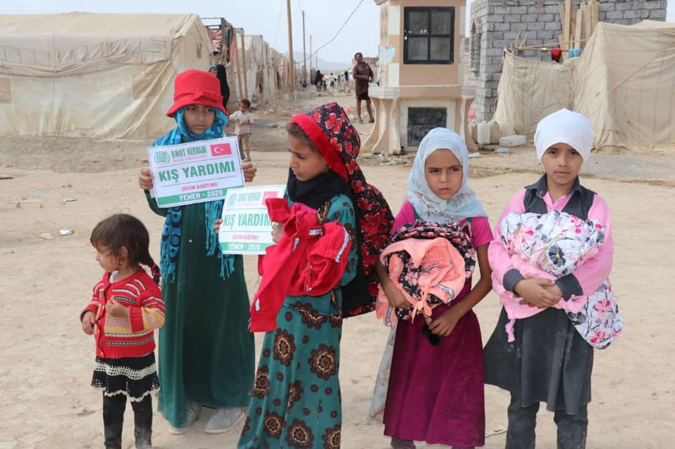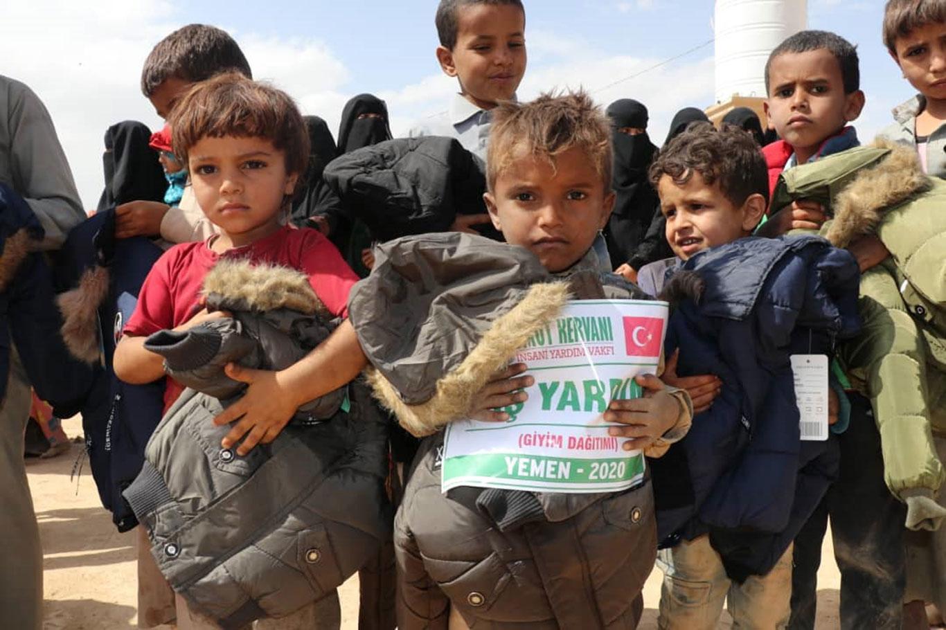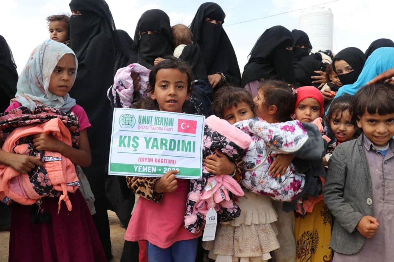 Umut Kervanı Vakfı Yemen'de muhtaçlara kışlık giyim yardımında bulundu