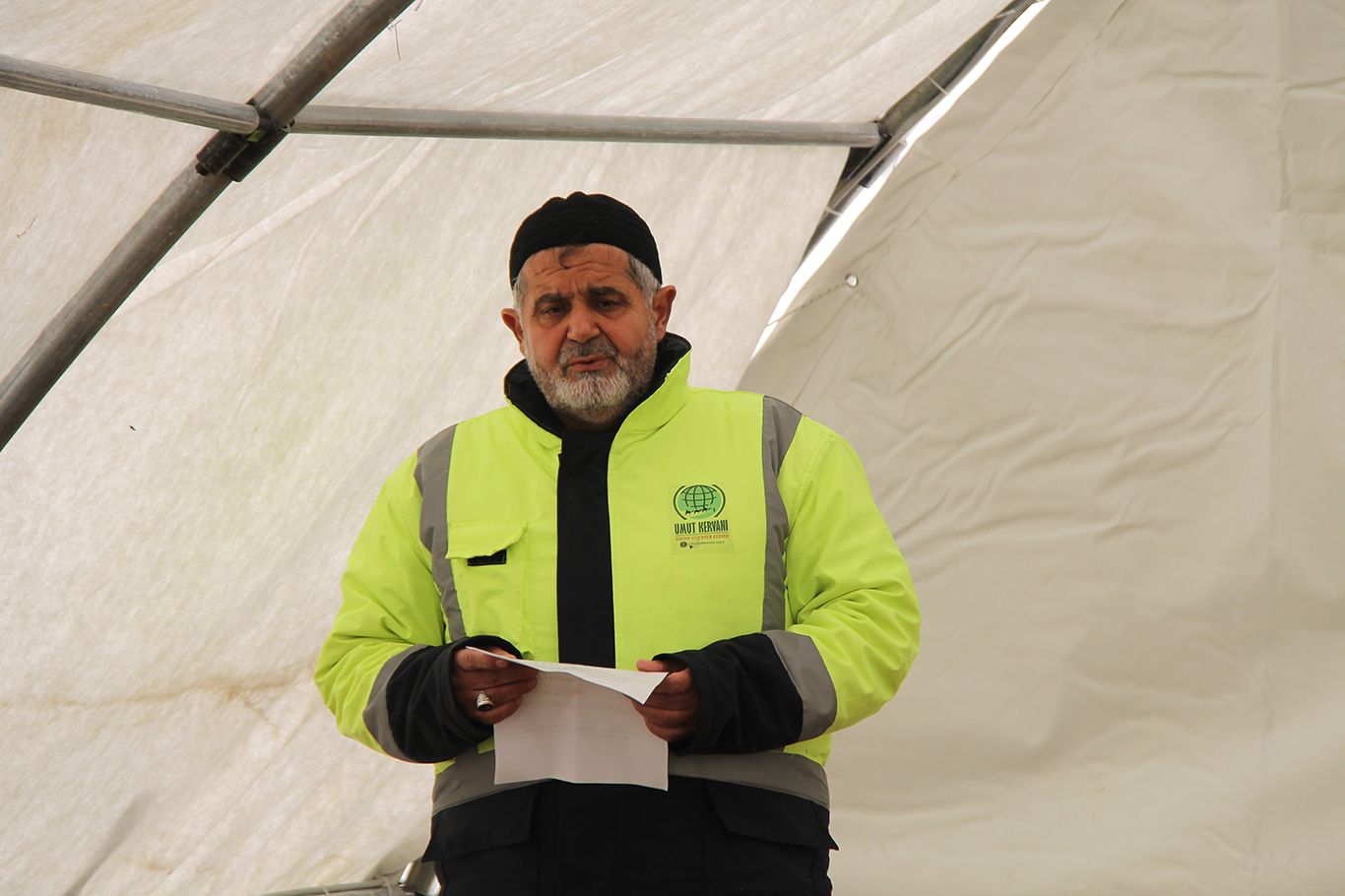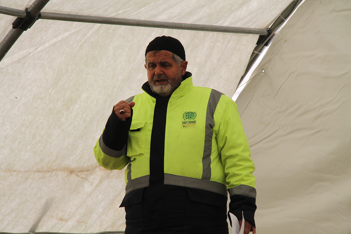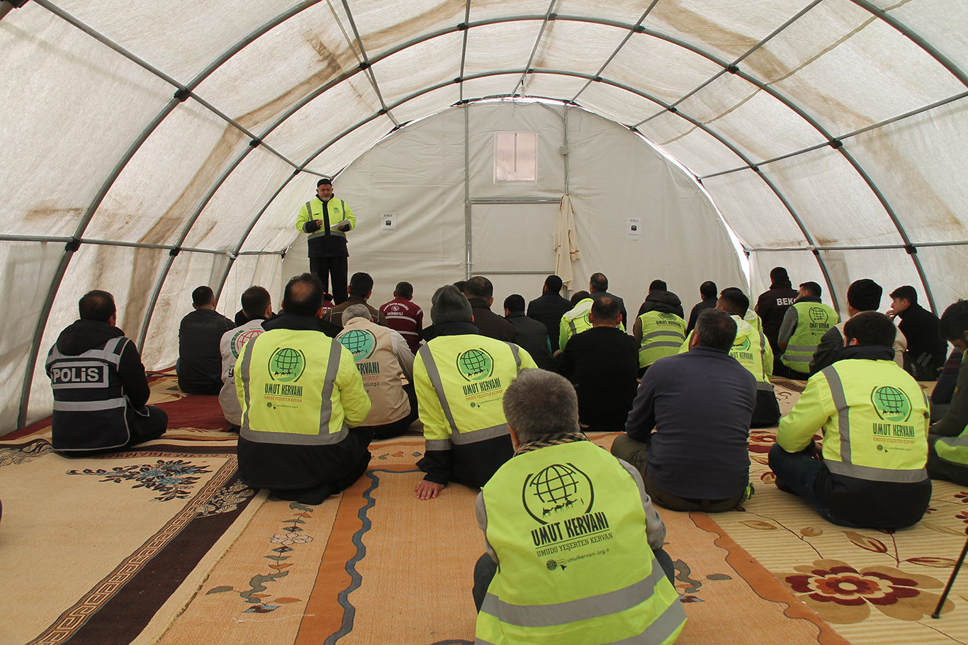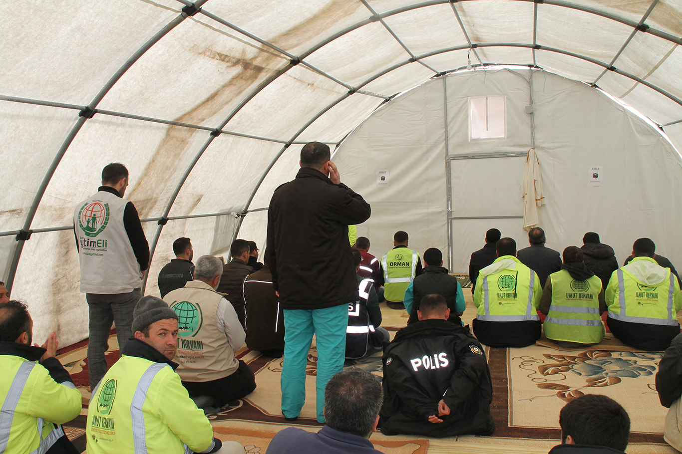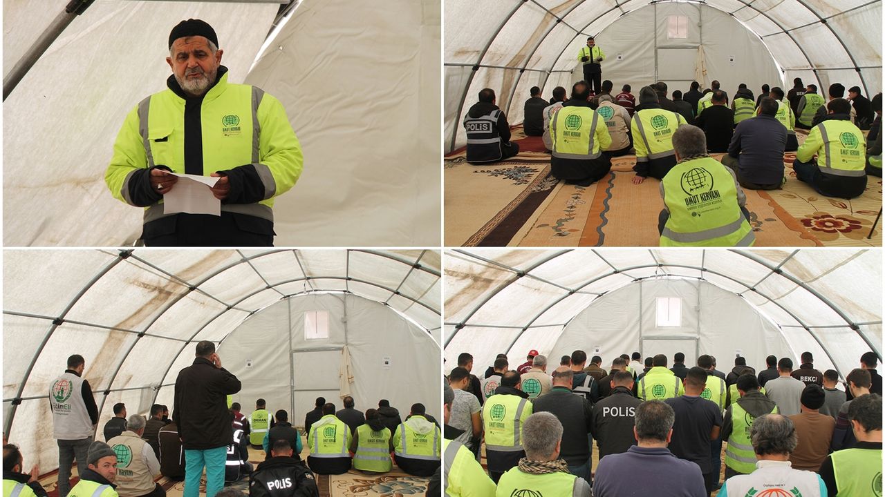 Umut Kervanı Vakfının Hatay'da açtığı çadırda Cuma namazı kılındı