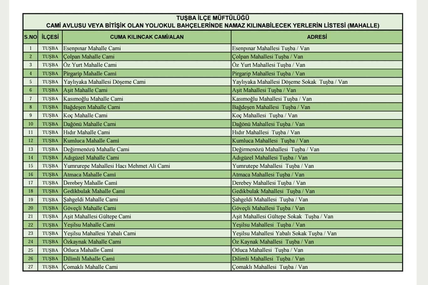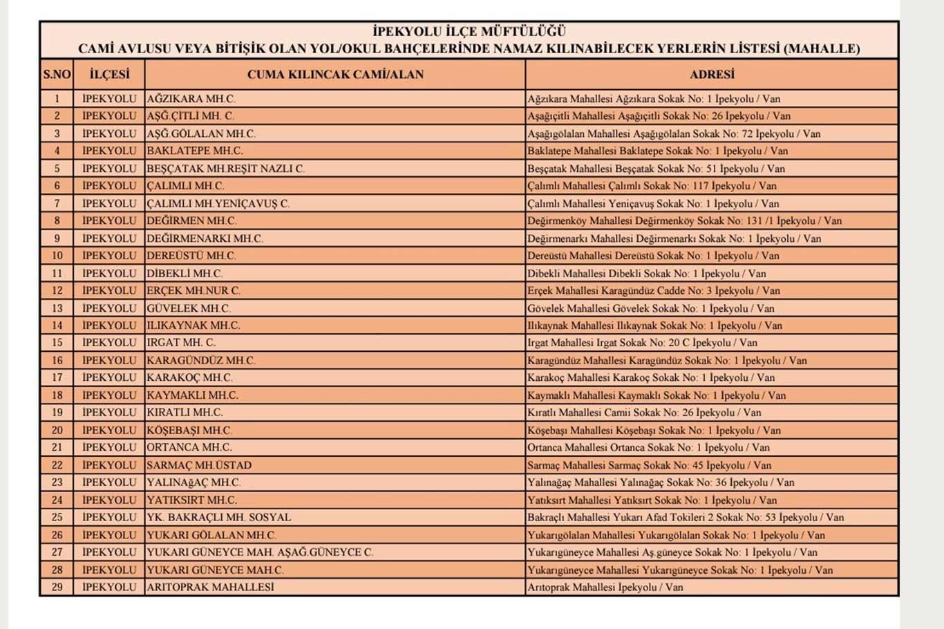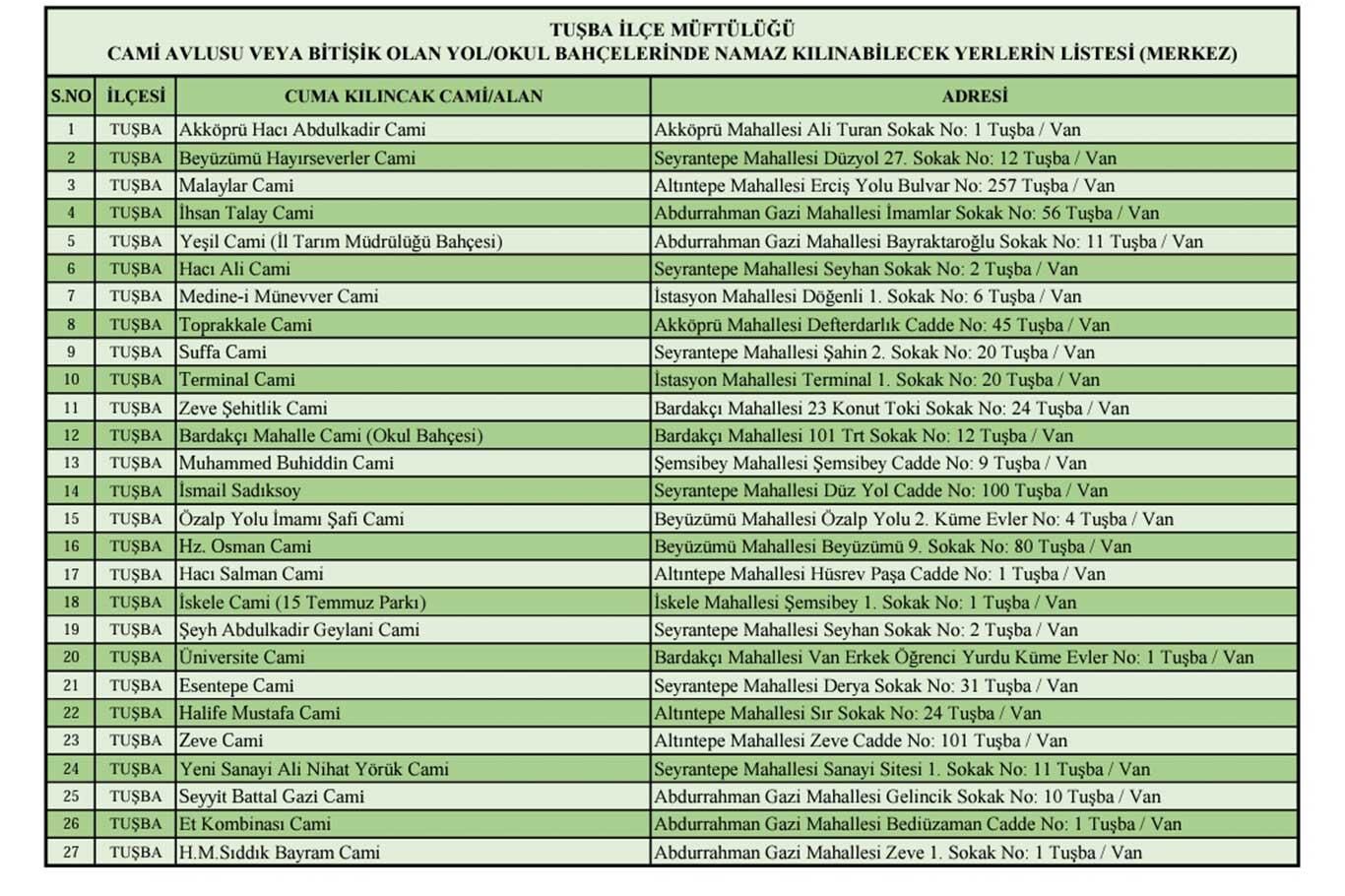 Van'da Cuma namazı kılınacak alan ve camilerin listesi yayınlandı
