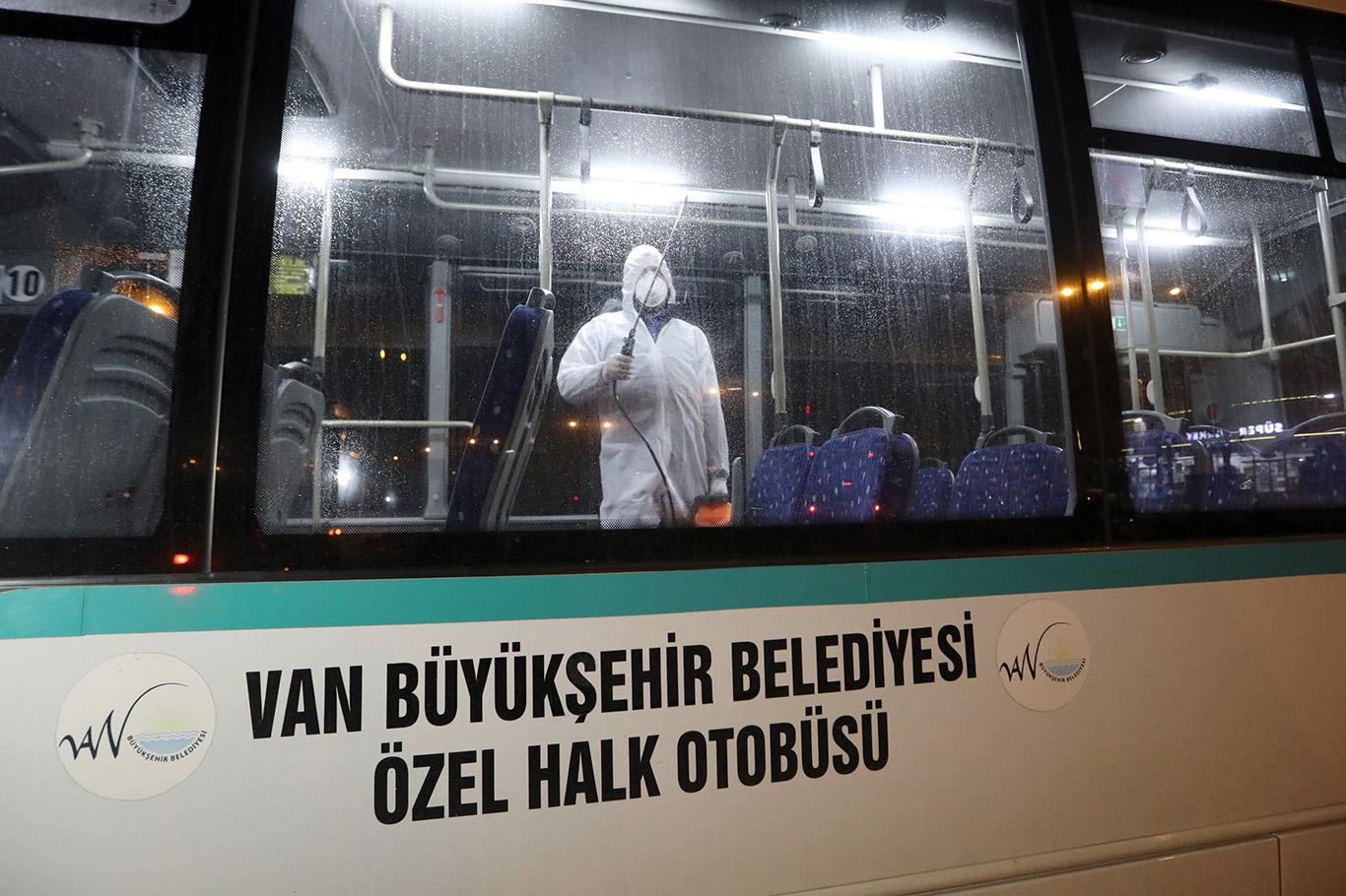 Van’daki toplu taşıma araçları Corona virüse karşı ilaçlanıyor