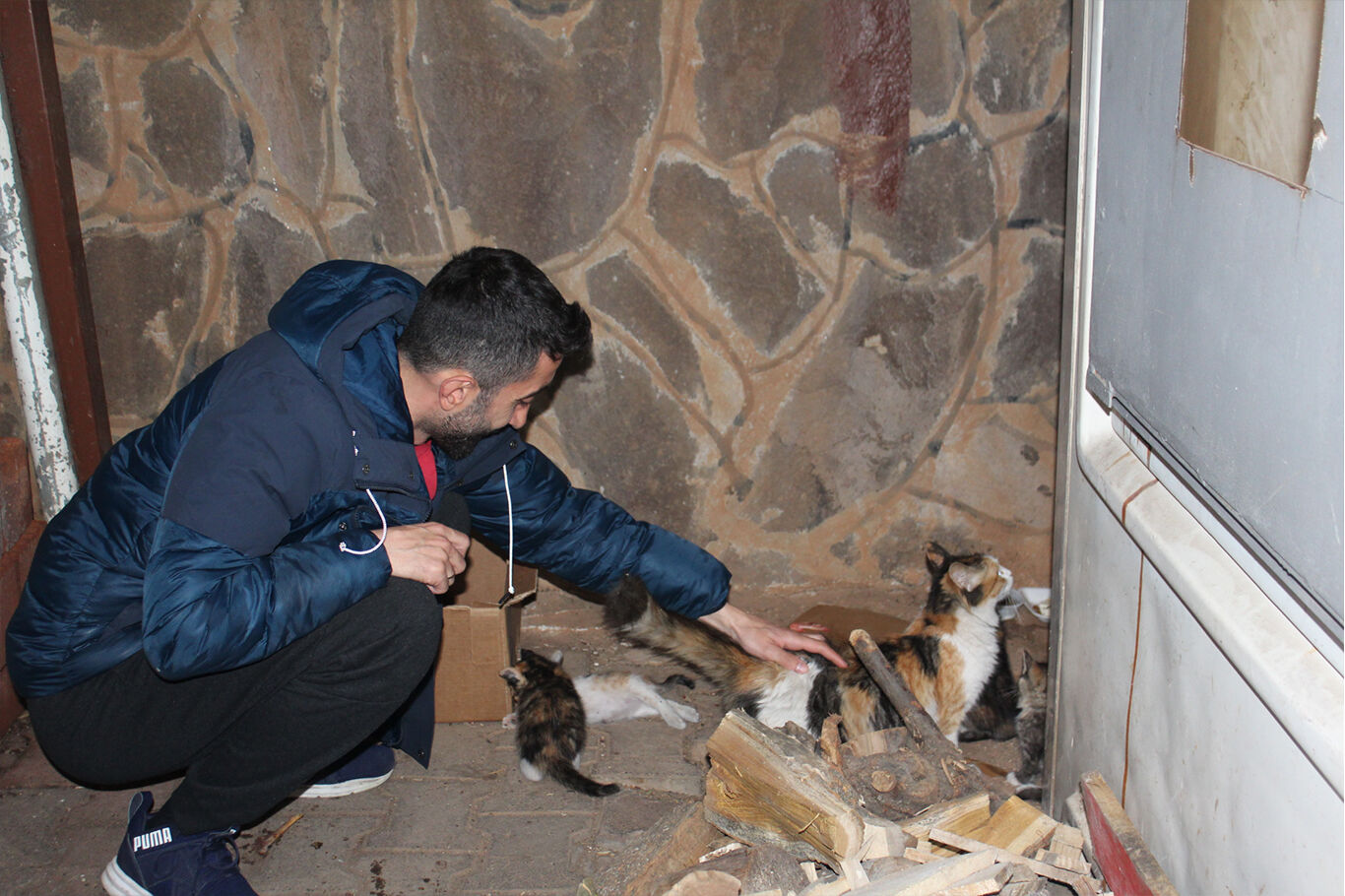 Yaralı yavru kedi tedavisi yapılarak annesinin yanına bırakıldı