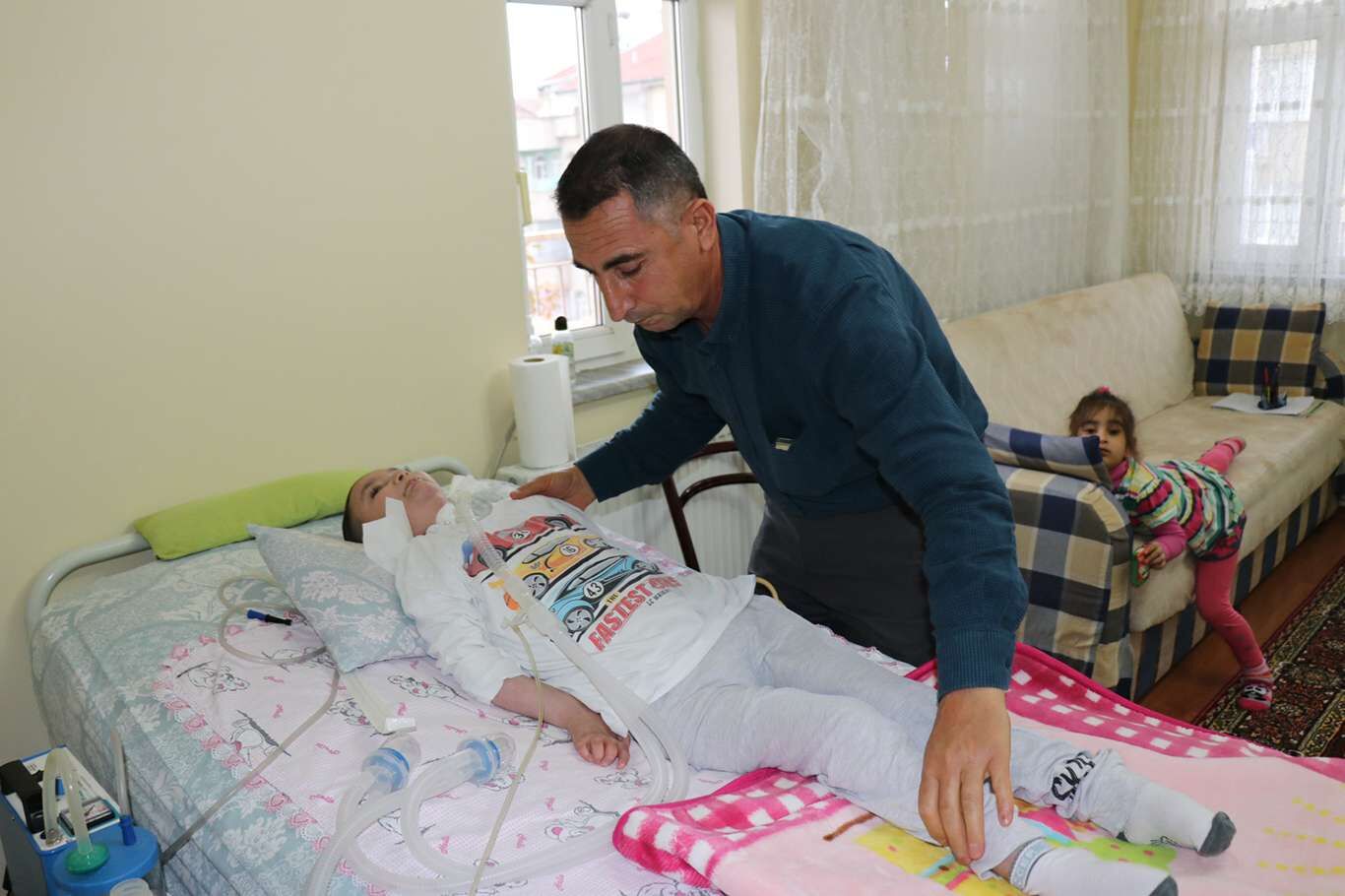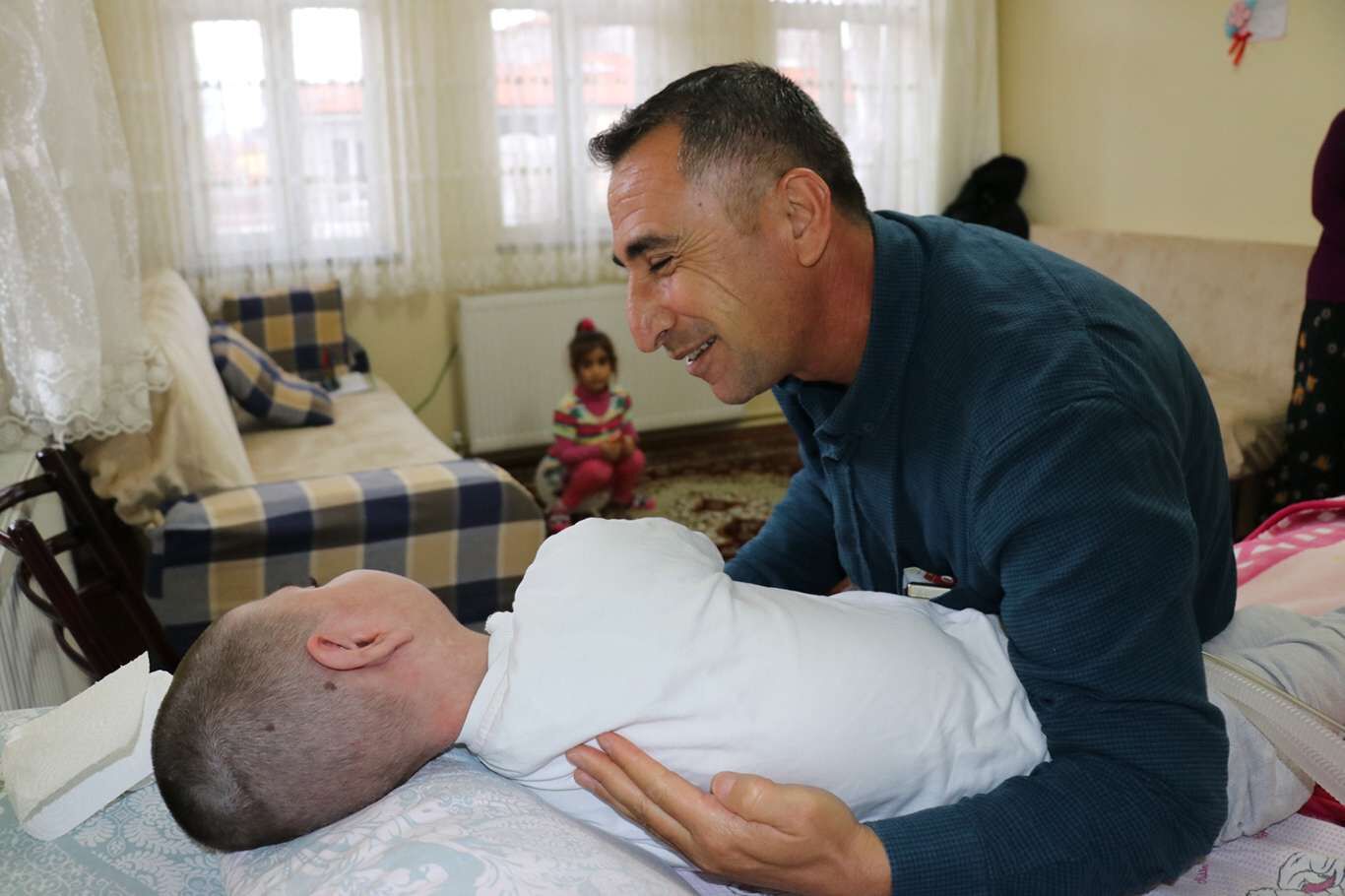 Yatalak oğullarına gözleri gibi bakıyorlar