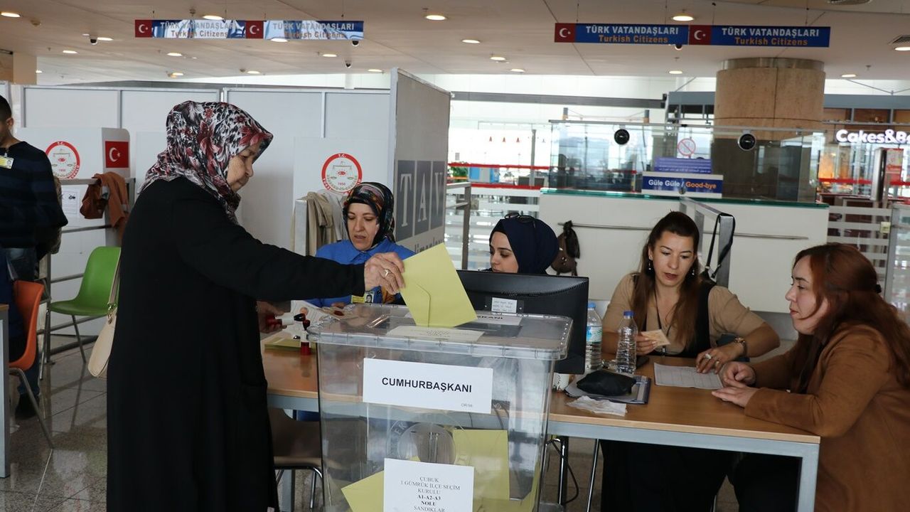 Yurt dışı seçmenleri, Esenboğa Havalimanı'nda oy verme işlemlerine başladı