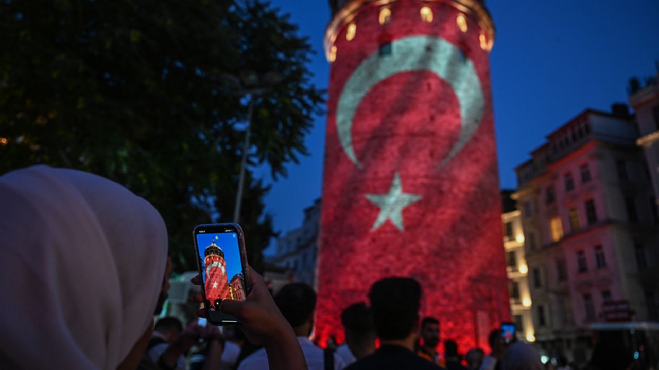 Daha sonra Galata Kulesi'ne Türkiye bayrağı ve 15 Temmuz şehitlerinin fotoğrafları yansıtıldı.