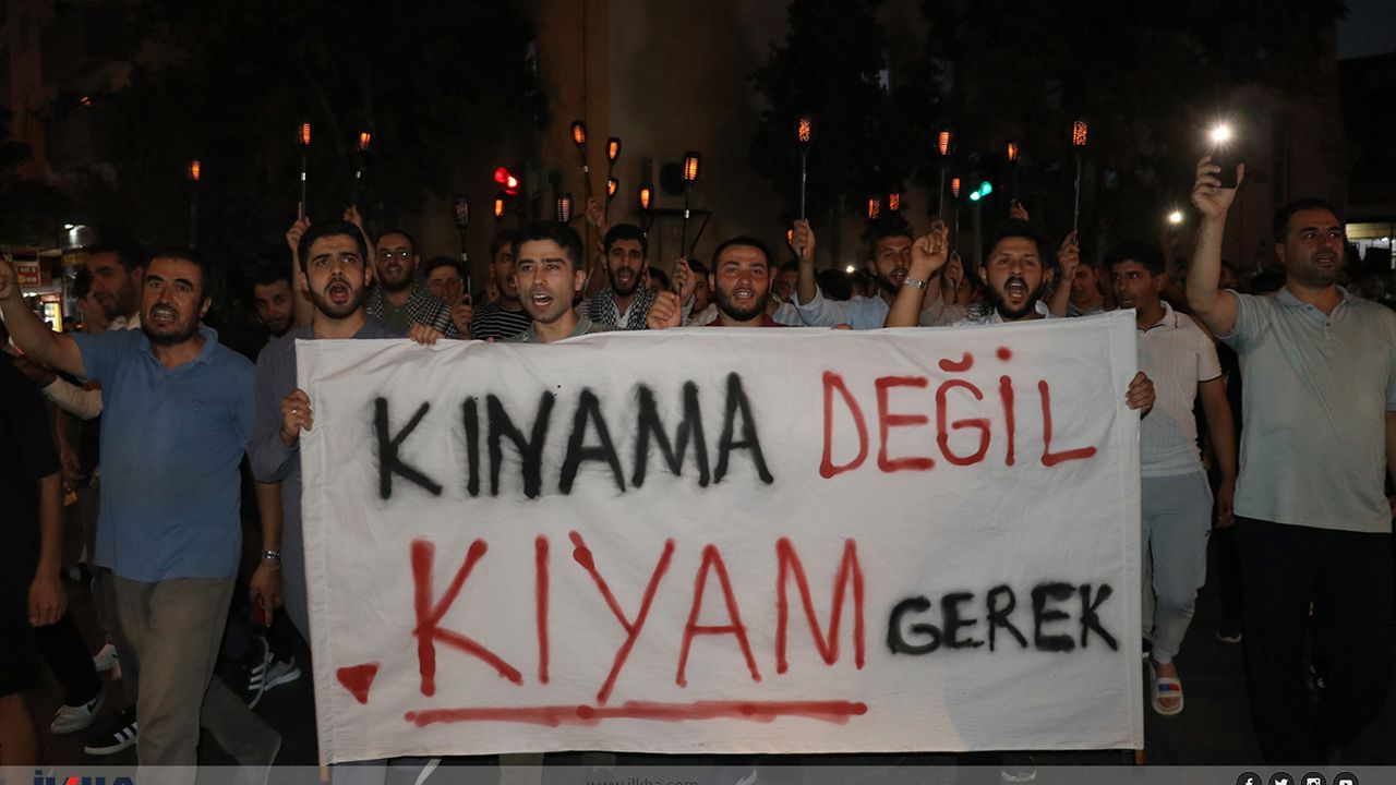 Fatih Camii önünde bir araya gelen kalabalık, tekbirler ve sloganlar eşliğinde Demirkardeşler Camii’ne kadar yürüdü.