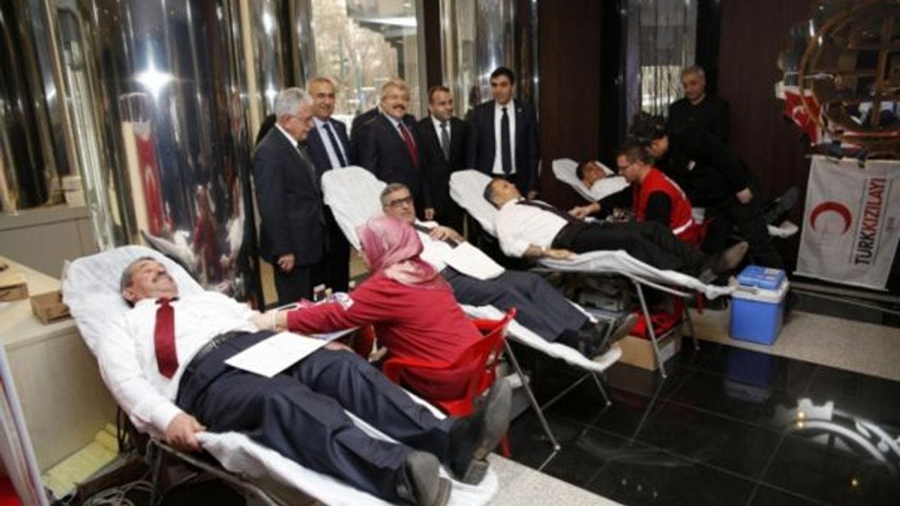 Konuşmaların ardından Gaziantep Valisi Ali Yerlikaya`nın yanı sıra protokol üyeleri kan bağışında bulundu. (İLKHA)