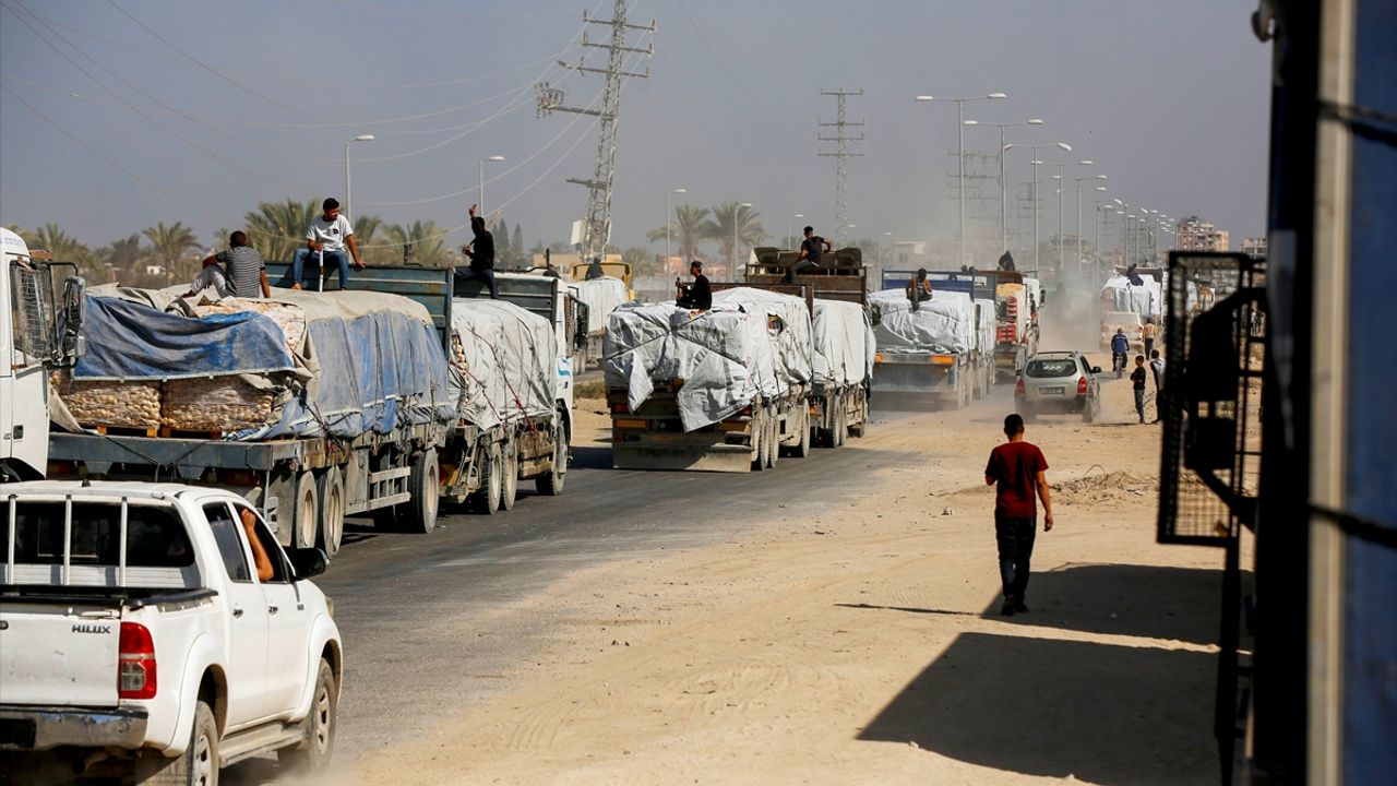 Gıda ve akaryakıt yardımı taşıyan tırlar, Birleşmiş Milletler'e bağlı uluslararası kuruluşların gözetiminde, Gazze'deki Kissufim Sınır Kapısı üzerinden Gazze Şeridi'nin doğu kesiminde yer alan Deyr Balah'a ulaştı.