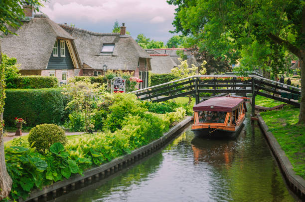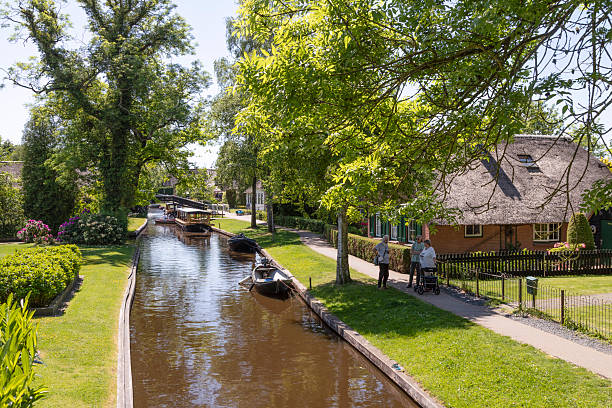 "Kuzeyin Venedik'i" olarak bilinen Giethoorn'da hiçbir araba yolu bulunmuyor. Ulaşım tamamen kanallar üzerinden teknelerle veya ahşap köprüler aracılığıyla yapılıyor. Gürültüden uzak, sadece kuş sesleri ve su şırıltısının hakim olduğu bu köy, masalsı bir huzur sunuyor.