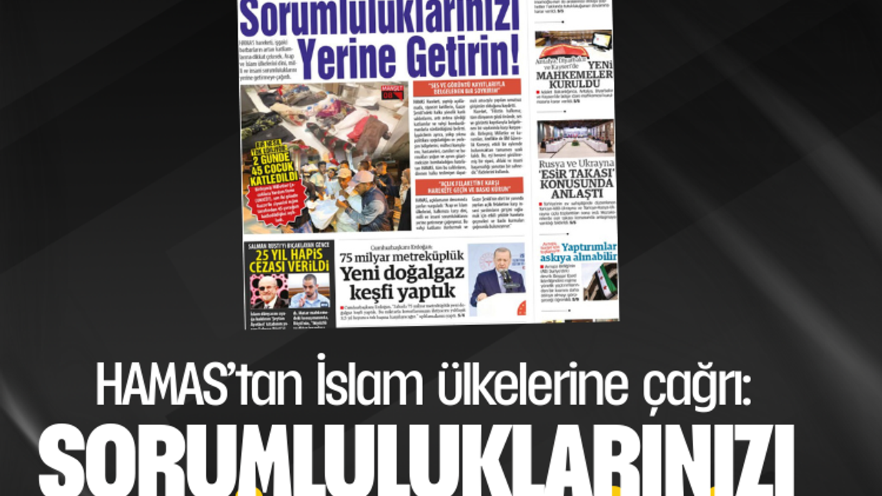 HAMAS, açıklamanın devamında şunları vurguladı: "Arap ve İslam ülkelerini, halkımıza karşı dini, milli ve insani sorumluluklarını yerine getirmeye çağırıyoruz. Bu vahşi katliamı durdurmak ve Gazze Şeridi’nin dört bir yanında yayılan açlık felaketine karşı insani yardımların girişini sağlamak için etkili şekilde harekete geçmeleri ve baskı kurmaları çağrısında bulunuyoruz." (İLKHA)