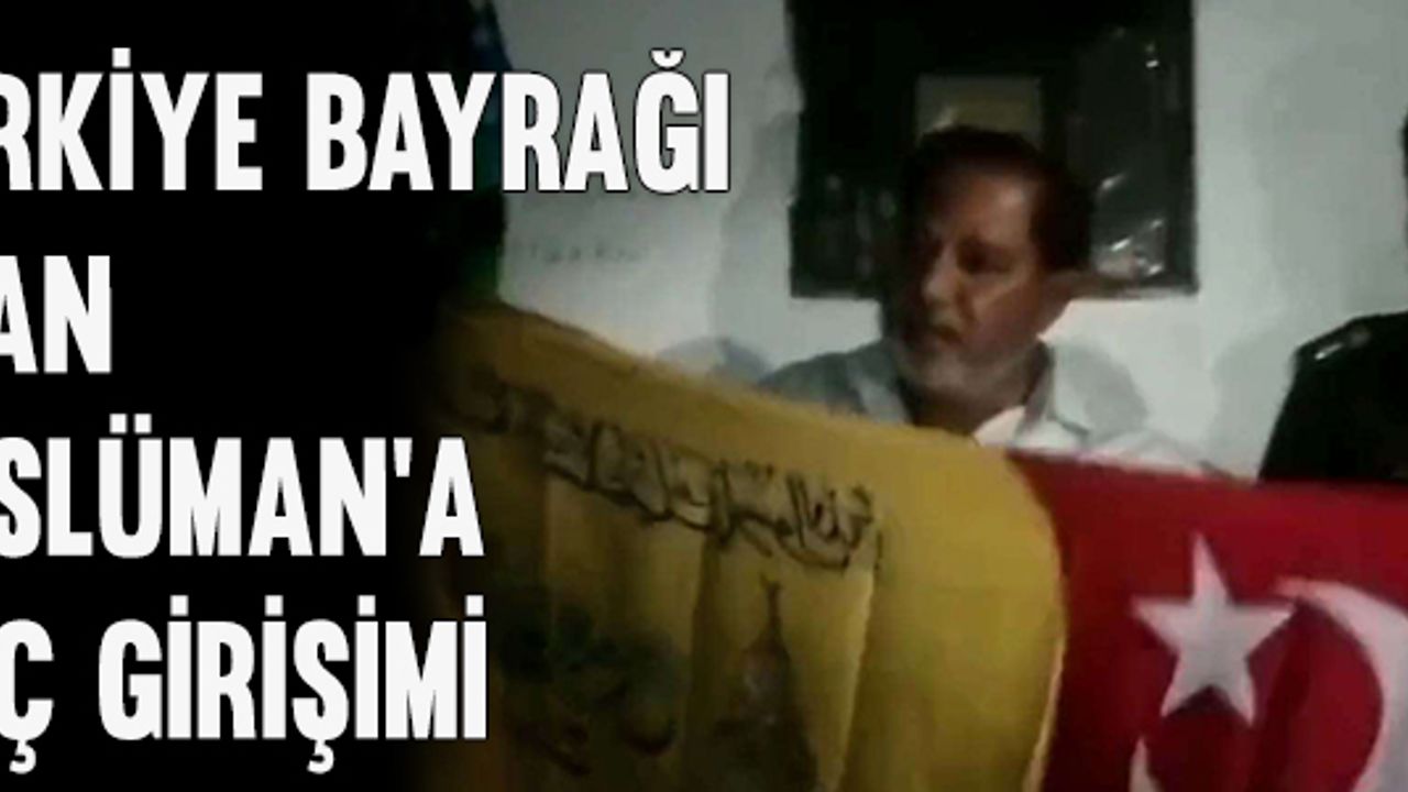 Bayrakların birinde Türkiye bayrağıyla birlikte Arapça yazıların olduğu görülüyor.
