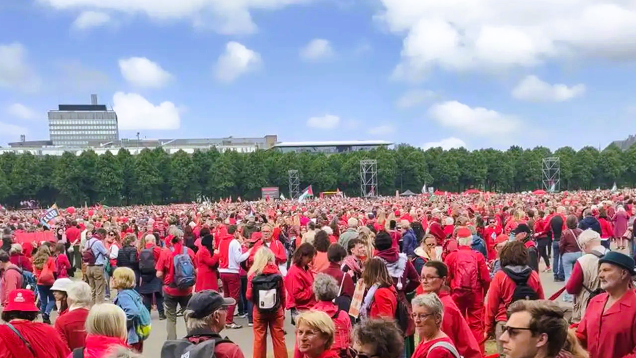 Lahey'in merkezindeki Malieveld'de Filistin yanlısı büyük bir gösteri düzenlendi. NU.nl portalının haberine göre, etkinliğe yaklaşık 100 bin kişi katıldı.