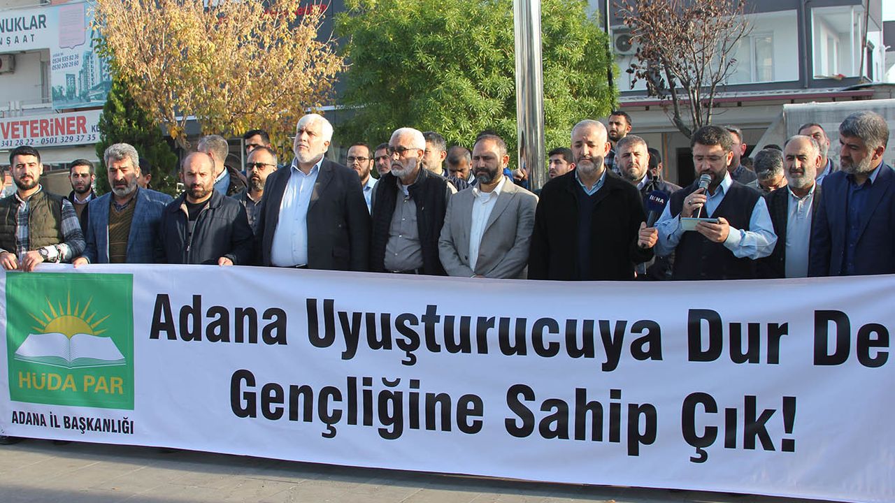 HÜDA PAR Adana İl Başkanlığı 'Madde Bağımlılığı ile Mücadele' kapsamında 'Adana Uyuşturucuya Dur De Gençliğine Sahip Çık' sloganıyla basın açıklaması düzenledi.