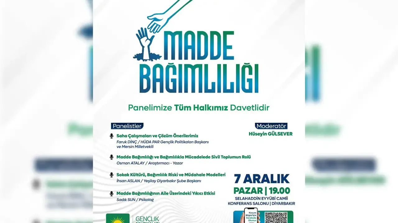 Panele ilişkin yapılan duyuruda, HÜDA PAR Gençlik Politikaları Başkanlığı tarafından düzenlenecek programa tüm Diyarbakır halkı davet edildi.