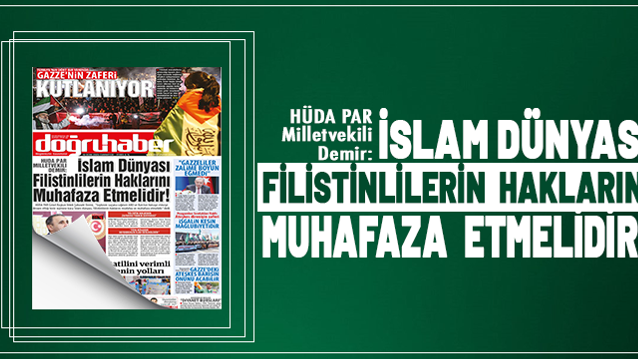 Yaklaşık bir buçuk yıldır açlığa, susuzluğa ve tüm kayıplara rağmen bu işgalci sürüsüne boyun eğmeyen Gazze halkı ve tüm imkânsızlara rağmen direnişe devam ederek Filistin halkının onurunu koruyan tüm Filistinli direniş gruplarının zaferini tebrik eden Demir, ateşkes sürecinde İslam dünyasının üzerine düşen yükümlülükleri hatırlattı.