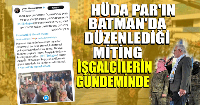 Bugün tüm dünyada olduğu gibi Türkiye'de de İşgalcilerin soykırımını lanetlemek ve Filistinlilerle dayanışmak için on binlerce insan meydanlara akın etti. HÜDA PAR Batman İl Başkanlığı'nın organize ettiği ve on binlerce kişinin katıldığı miting İşgalci medyasında yer aldı.