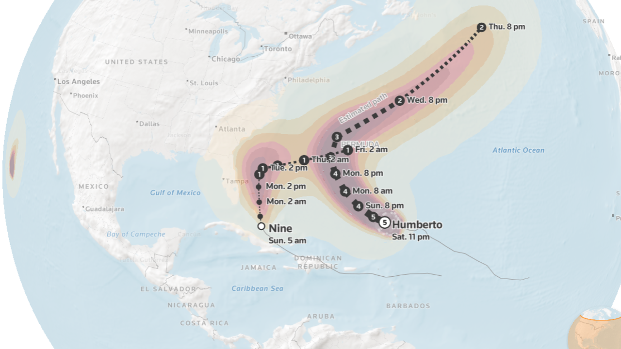 Bu arada, Humberto, Bermuda'ya doğru kuzeye ve doğuya doğru ilerlerken 5. kategori rüzgar hızlarına ulaştı. Saatte 260 km (160 mil) hızındaki sürekli rüzgarlarla, ABD kıyılarına hayatı tehdit eden dalgalar ve ters akıntılar getirecek güçlü dalgalar göndermesi bekleniyor.