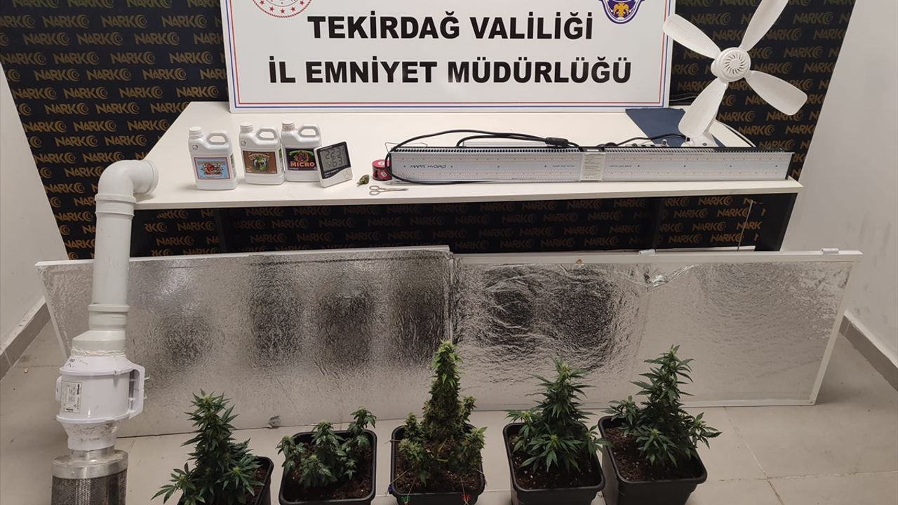 Aramada, bitki yetiştirme kabini, led aydınlatma ışık, fan, termometre, havalandırma sistemi, 3 sıvı bitki gübresi, esrar öğütme aparatı, 5 saksı, 6 kök Hint keneviri bitkisi ve bir miktar sentetik uyuşturucu ele geçirildi.